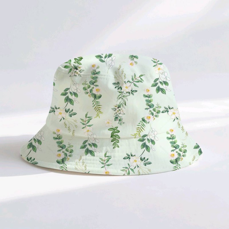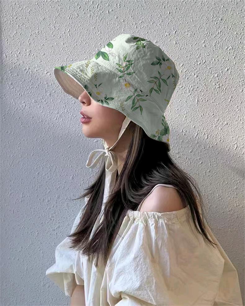 清新绿植花卉图案渔夫帽,尽显自然雅致风