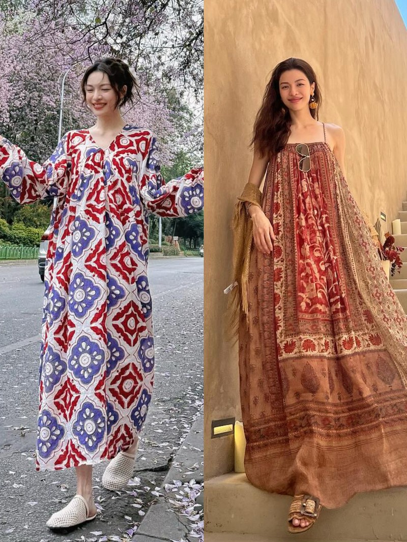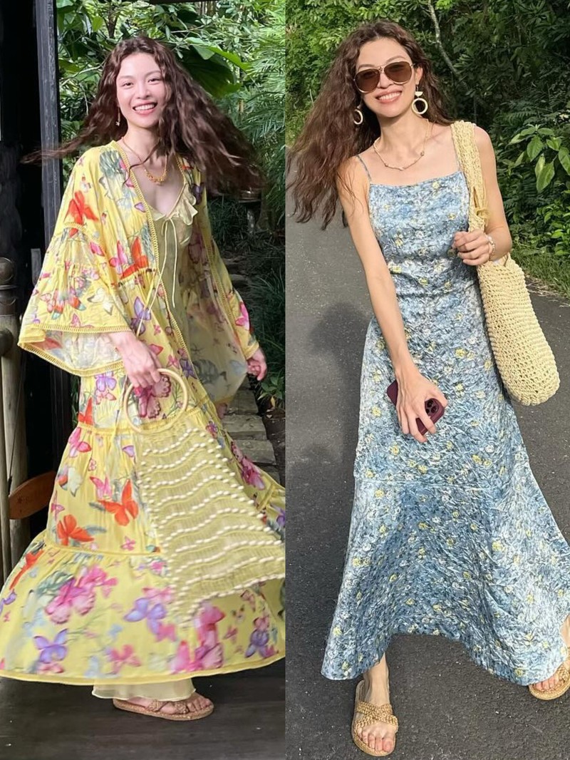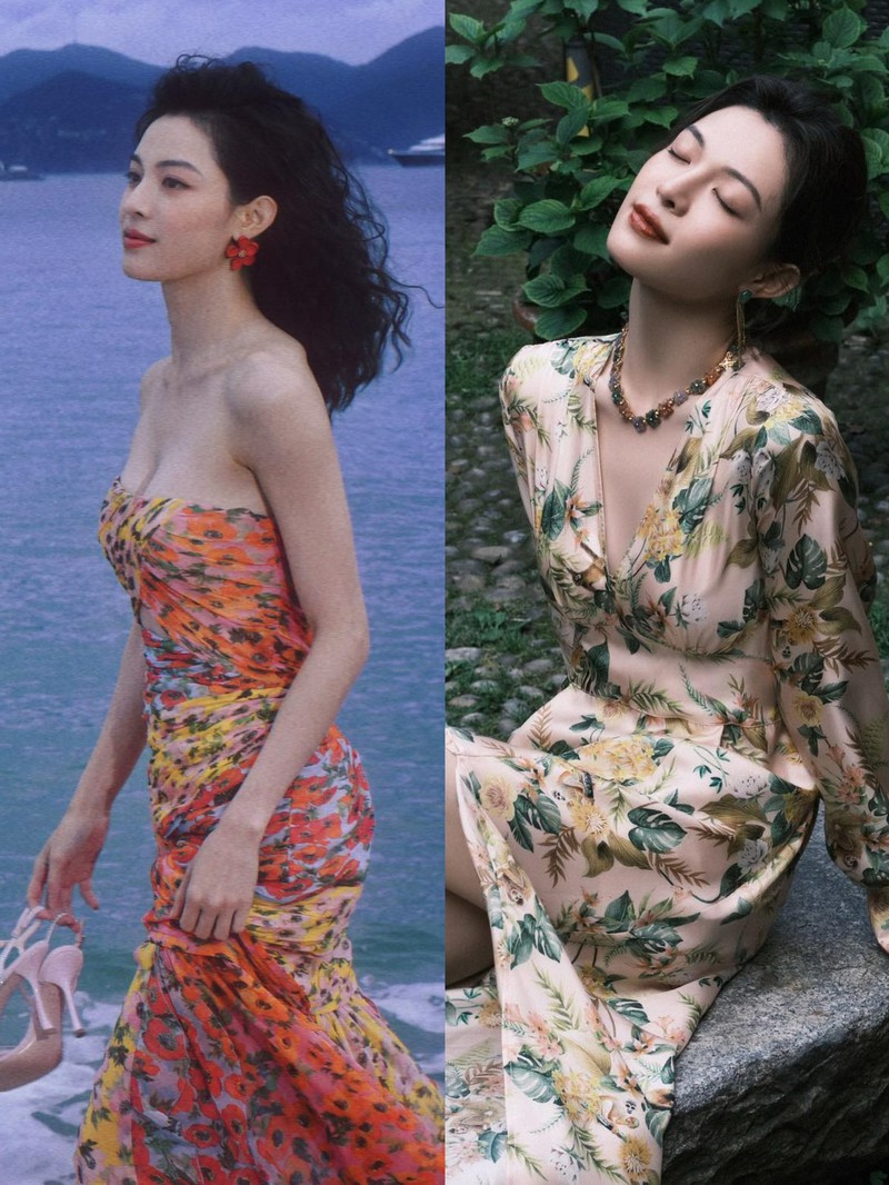 姐妹们!谁还没被钟楚曦的度假美照刷屏?每次在ins刷到她的度假写真,都不禁感叹美啊,简直是把“氛围感”三个字焊在身上了!钟姐真的很喜欢各种印花连衣裙,妥妥的度假风精髓拿捏,从甜美花卉,到文艺扎染,再到民族风,搭配米白、浅蓝、鹅黄这类温柔色调,各种图案她都可以轻松驾驭,轻盈的雪纺、真丝或棉麻材质,海风一吹,裙摆飞扬,那种随性又浪漫的度假感瞬间拉满,拍照动态超美!这个夏天,就差这么一条能让你美到窒息、轻松出片的印花连衣裙了。