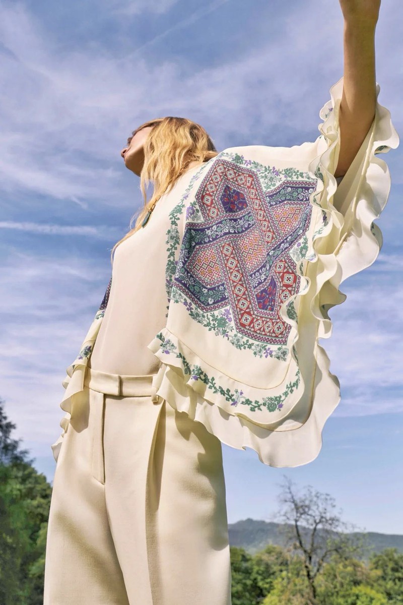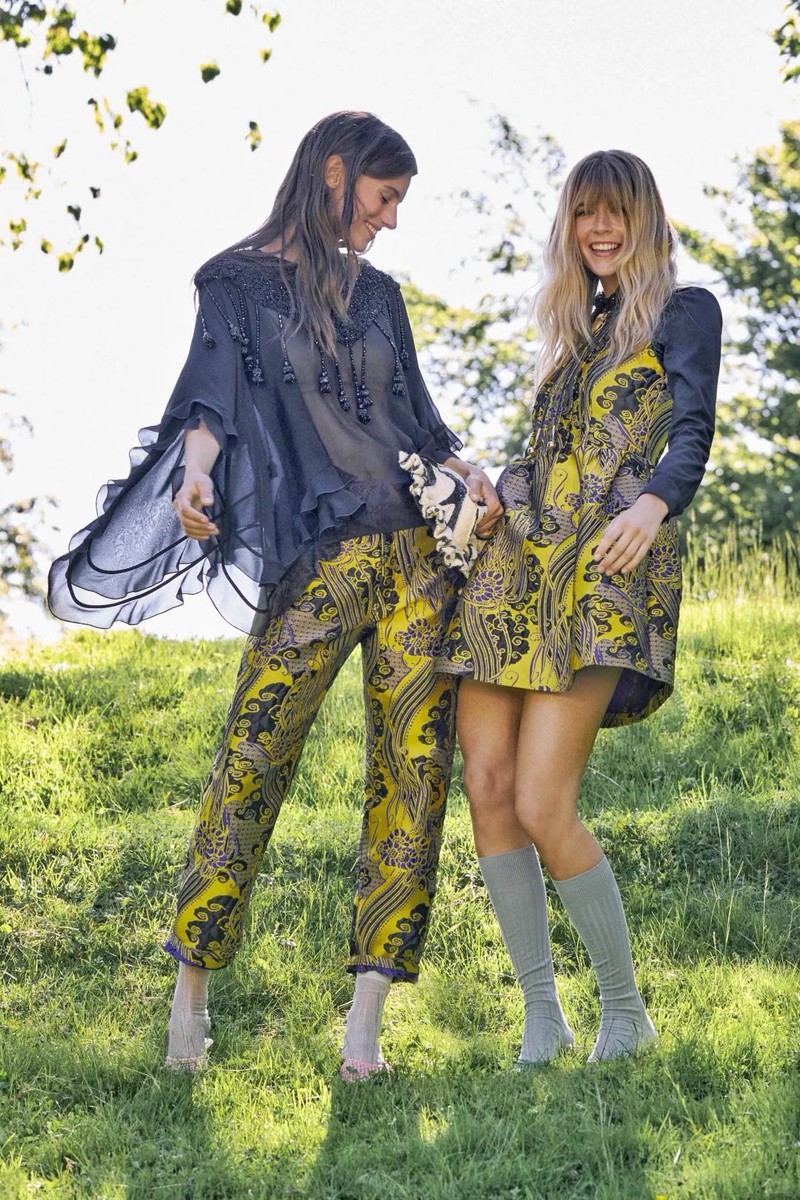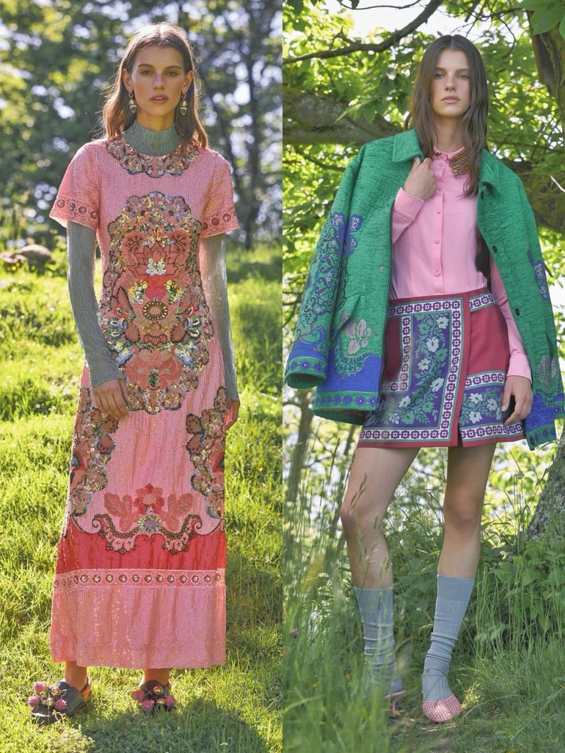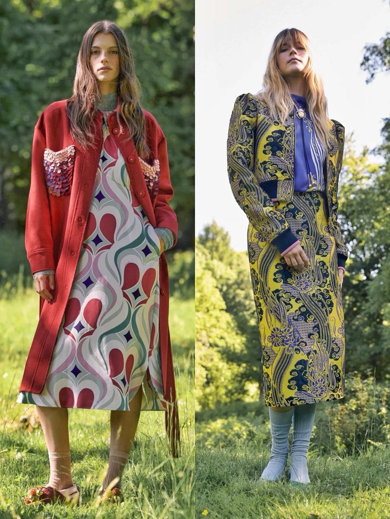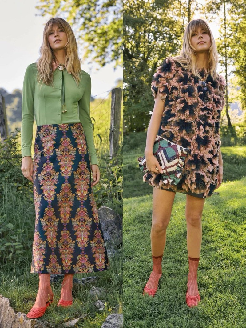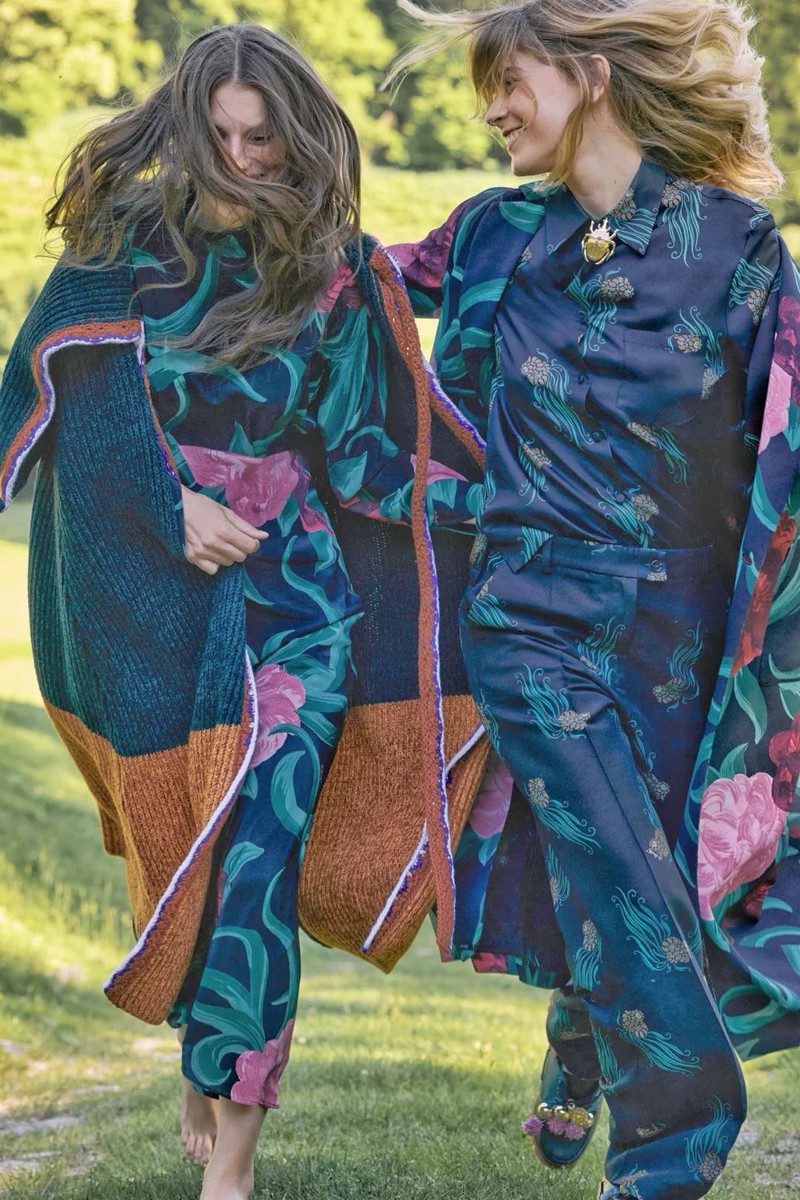 La DoubleJ的座右铭是“用欢乐包裹世界”,品牌创始人JJ Martin致力于通过高振幅印花和充满活力的时尚设计来提升人们的情绪和精神状态。 为庆祝品牌成立10周年,La DoubleJ将公司迁至米兰Naviglio街区的新总部——LDJ星际总部。这栋六层建筑不仅是品牌的运营中心,还是一个提升社区意识的场所。 新总部的顶层是银河甲板,一个拥有360度城市全景的聚会空间。品牌支持者们在此进行精神实践,包括冥想、治愈课程和瑜伽课。一个定制的铜锣(镶嵌陨石碎片,经过埃特纳火山火祭锻造)是这些活动的核心道具。 尽管印花是La DoubleJ的核心特色,但创始人JJ Martin意识到过于强烈的印花可能会让人不知所措。因此,品牌在设计上进行了调整,降低了印花的强度,增加了实穿的基本款和简洁的单品,如白衬衫、牛仔布和黑色元素。 印花图案的尺寸放大,整体视觉效果更加柔和,但仍然保留了迷幻和深奥的象征意义。品牌推出了“奇幻生物”胶囊系列,与厄瓜多尔超现实主义艺术家Beto Val合作,设计了融合动植物元素的奇幻印花,如火烈鸟变成蜀葵、鹦鹉长出叶子等。