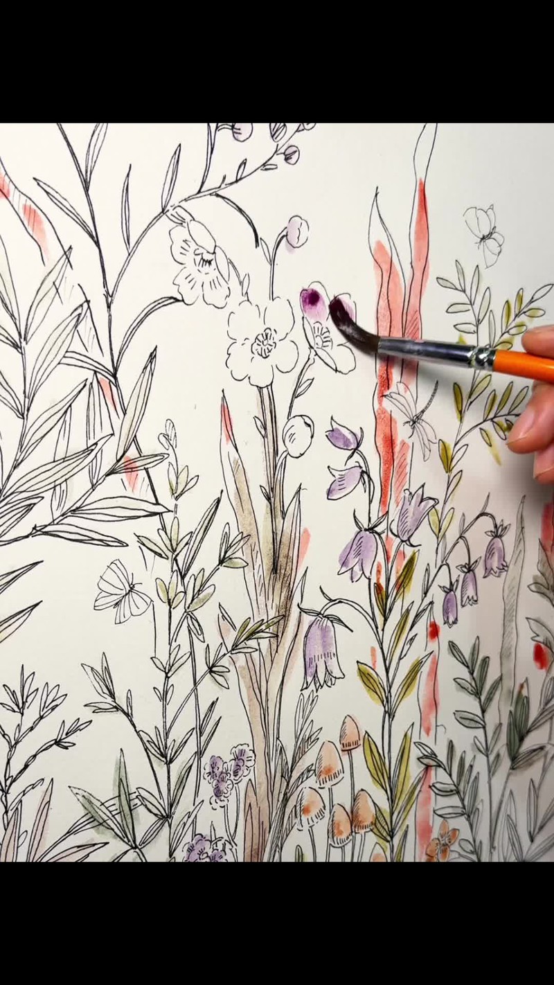 神仙画法!用线描+水彩画出清新花卉线描+水彩的方式画花卉图案,既简单又能出效果,搭配柔和的水彩色,不管是做成丝巾还是服装都非常好看,大家也可以去试试哦~