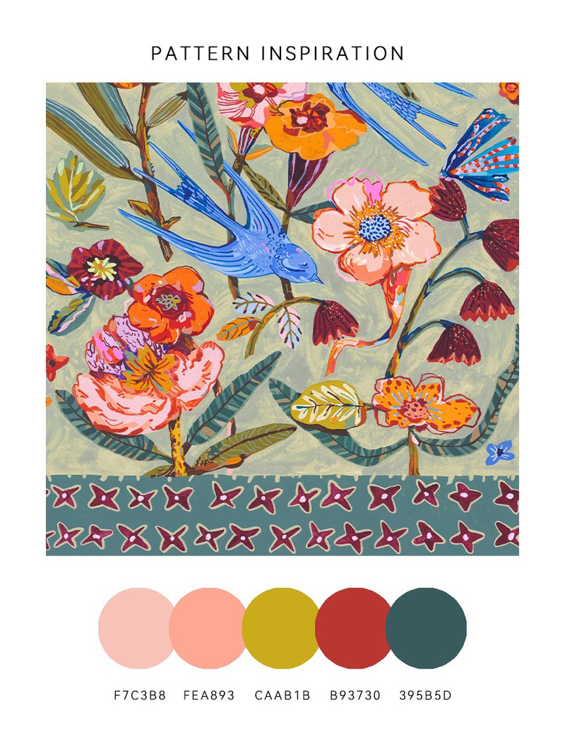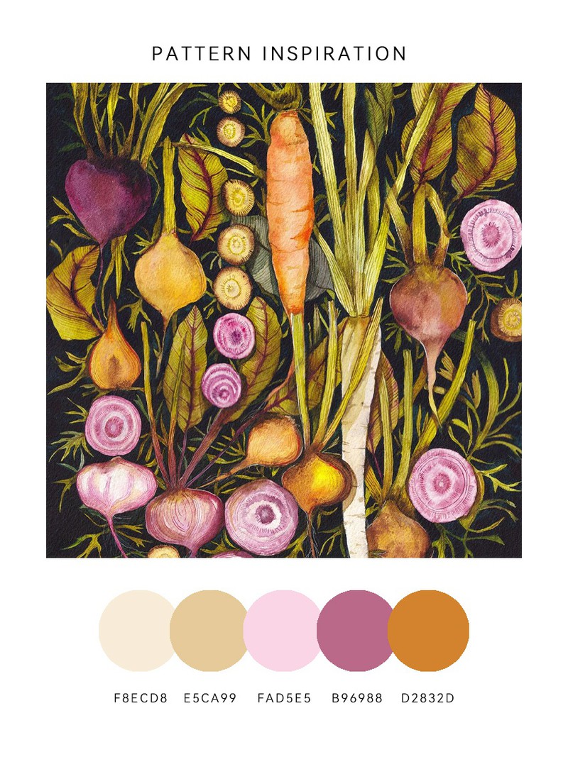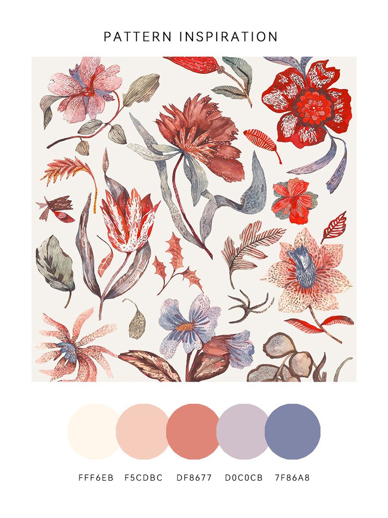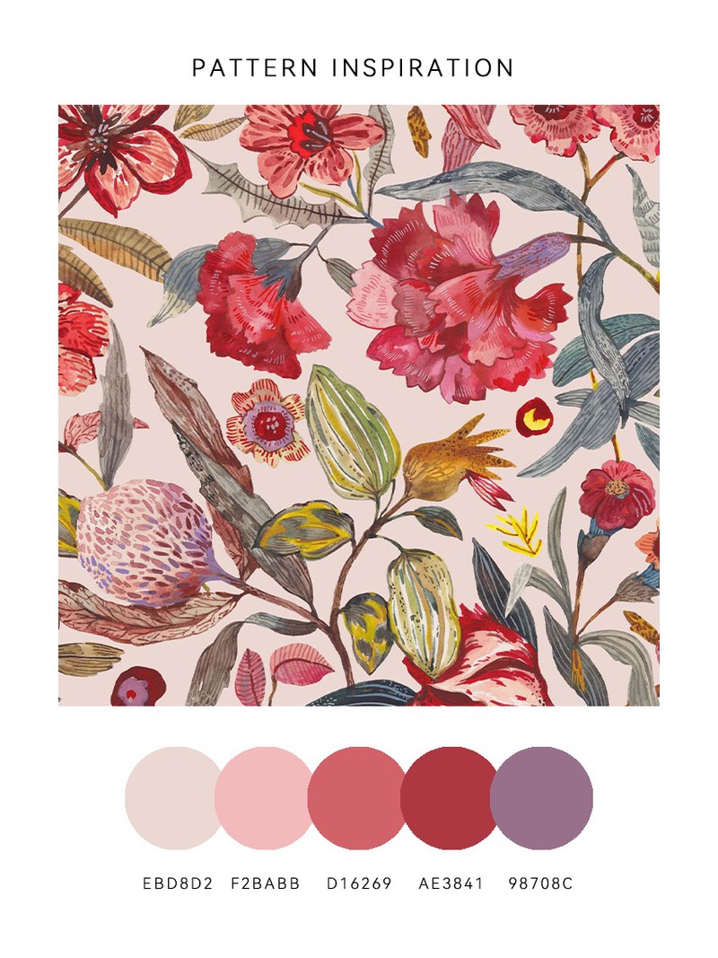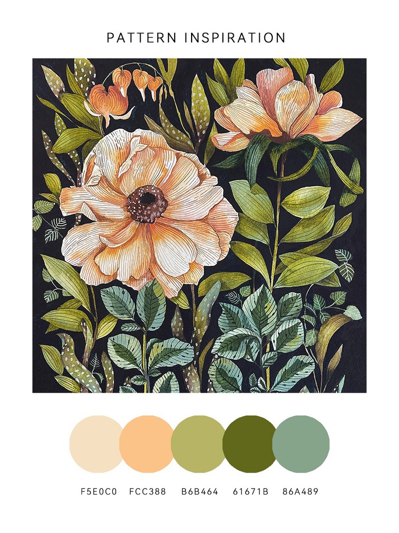 图案灵感 | 插画艺术家Sumit Gill的植物绘插画艺术家Sumit Gill专注于植物花卉等自然主题的绘画,作品融合写实与装饰性。尤其是对花瓣、枝叶、根茎的生物学结构刻画细致,兼具科学性与艺术美。细腻的线条与水彩质感突出手绘的肌理效果。低饱和度自然色调营造静谧氛围,再利用局部点缀高饱和亮色,如花蕊、果实,形成视觉焦点。除了创作艺术,她非常喜欢与两只小猫在一起的时光,一起远足或露营,发现自然之美。