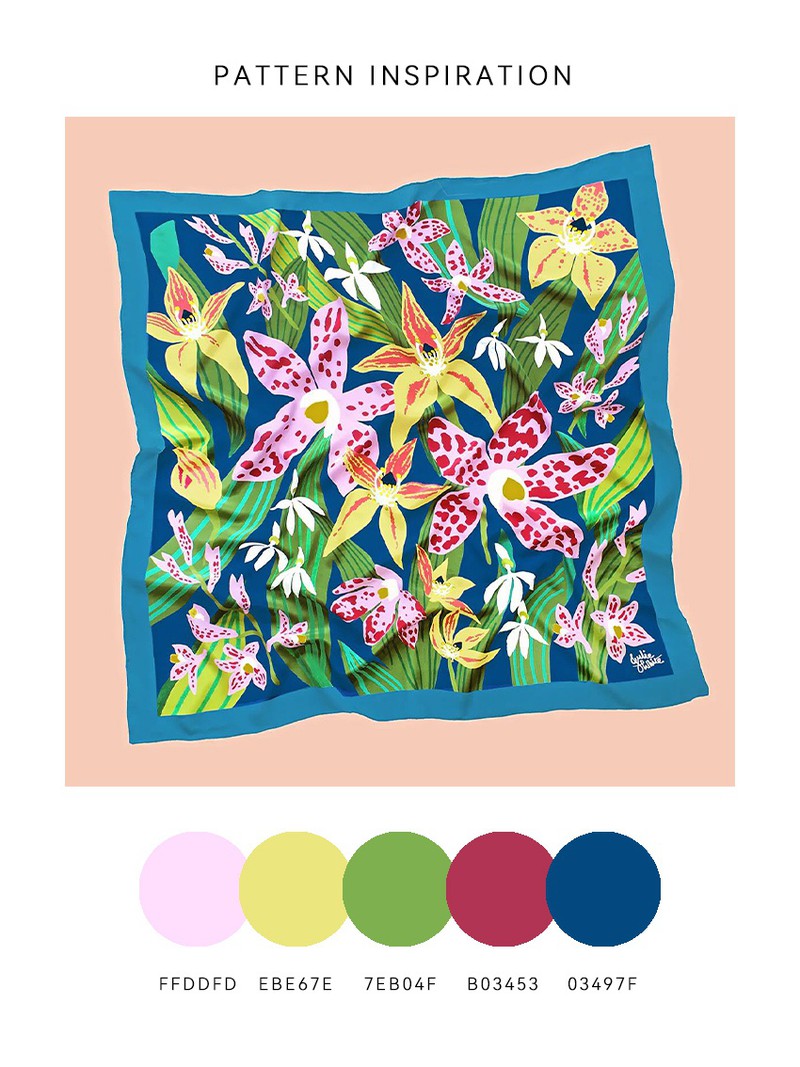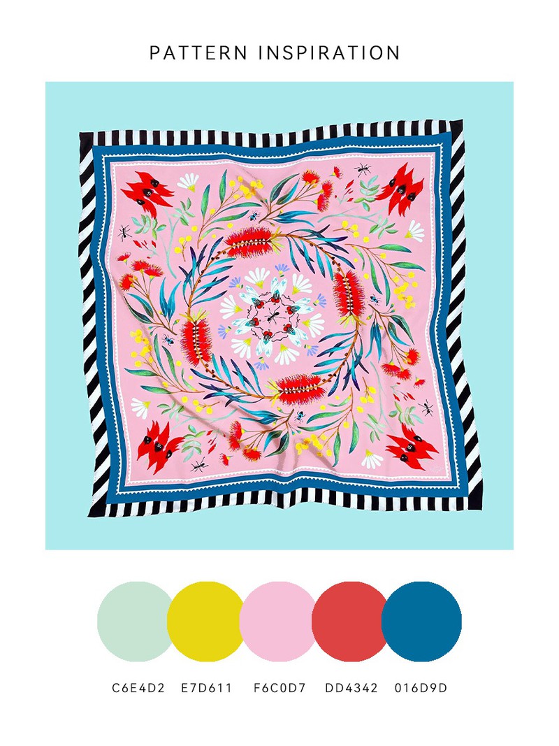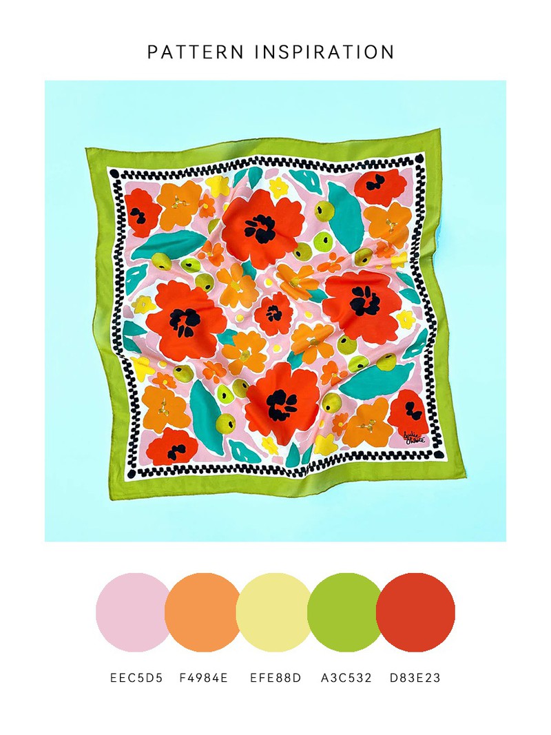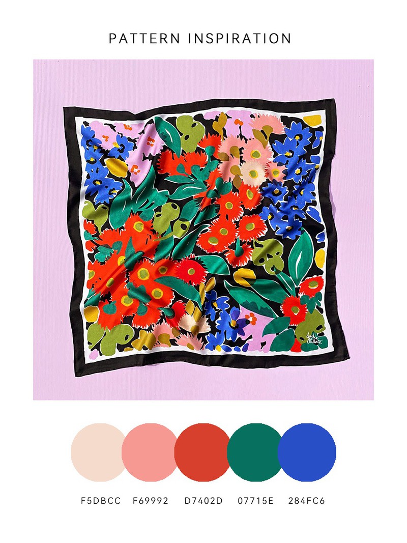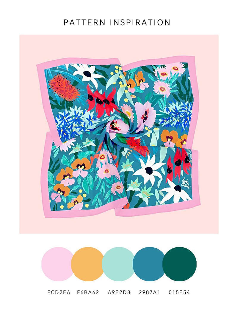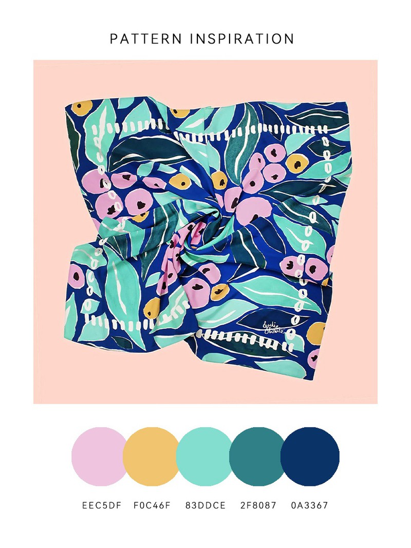 图案灵感|夏日蓝绿清新色调丝巾设计