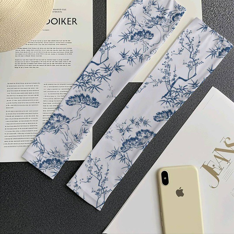 青花瓷纹冰袖,古韵新风,防晒亦添雅。