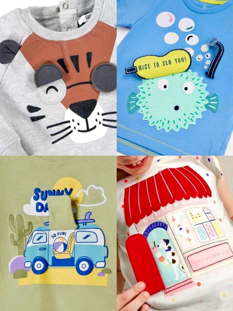 童装设计的一些小巧思,有趣的翻翻乐,翻盖有惊喜。
