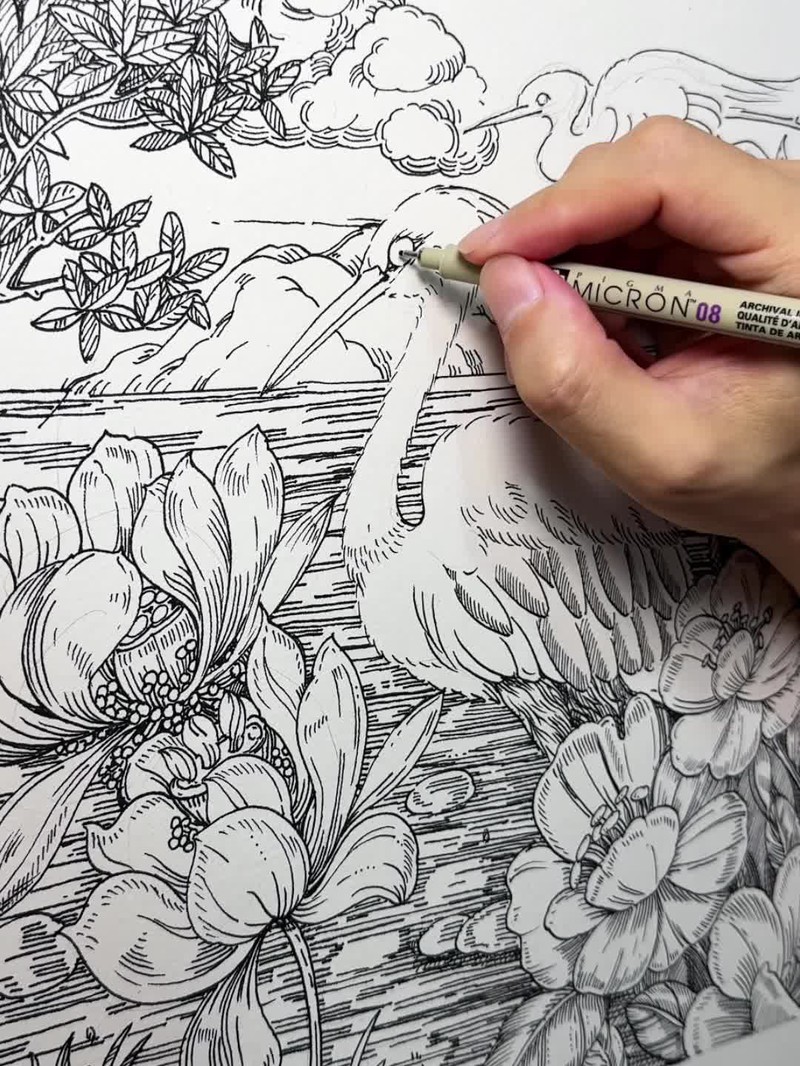 #设计师 #手绘 #线描 #黑白 #花鸟