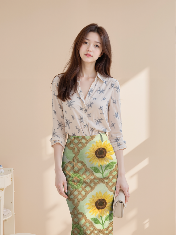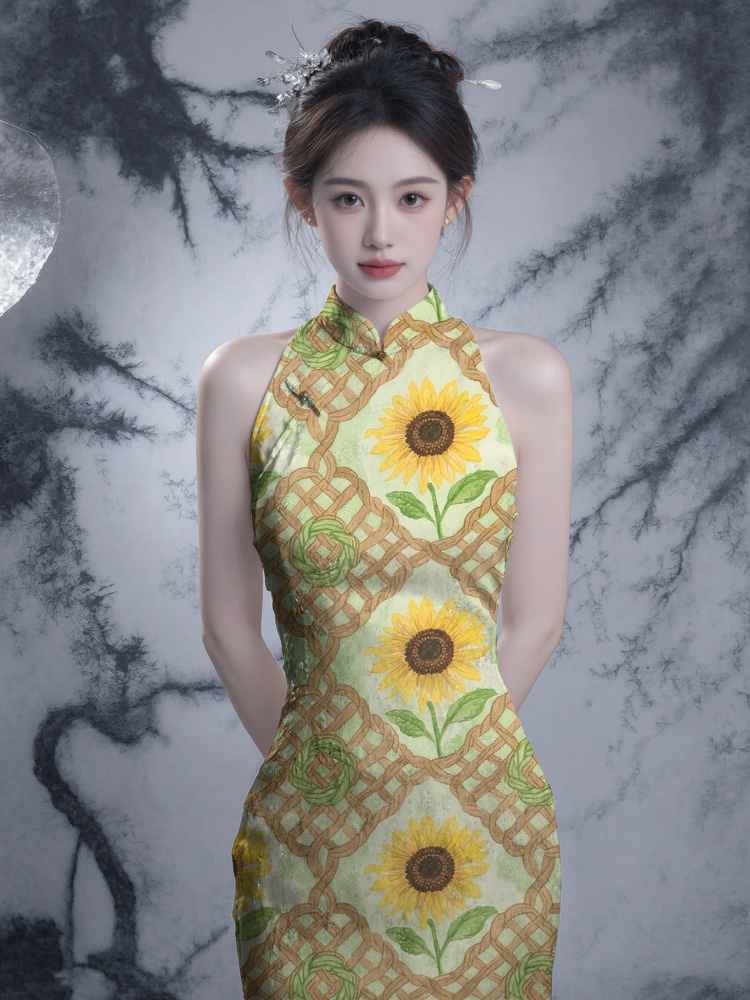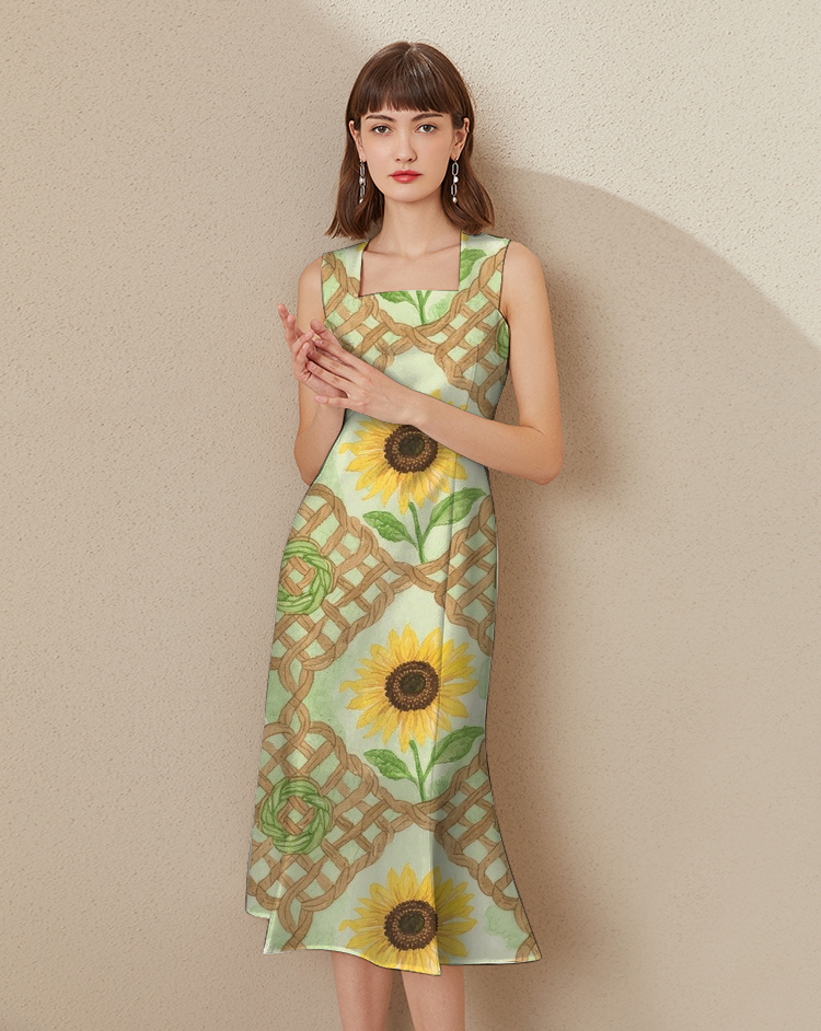 关键词:向日葵,女装裙,印花,年轻女装,国风