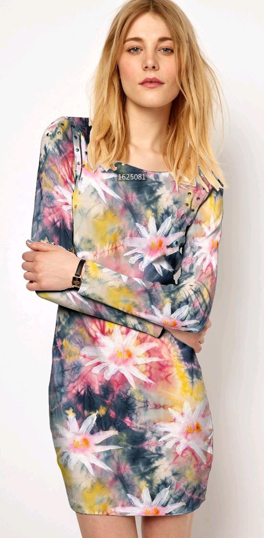 关键词:女装裙,印花,图案设计,扎染,花卉