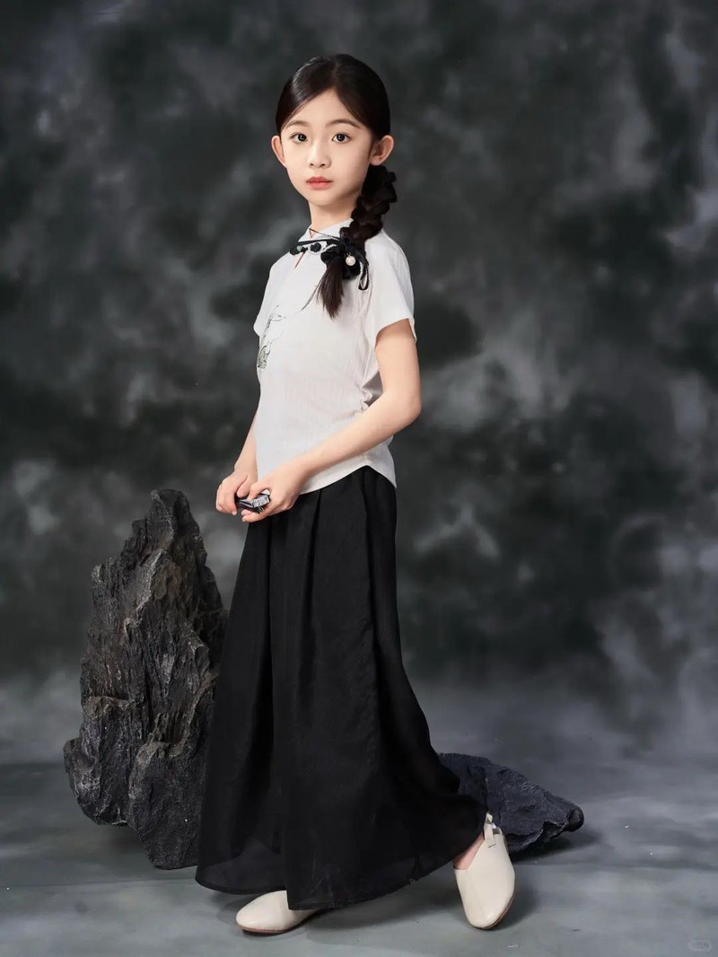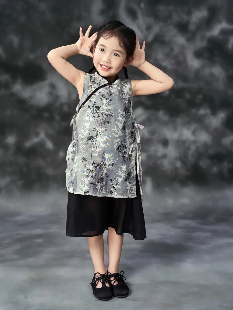 新中式风格童装|水墨画般的夏天以水墨形式的表达通过深浅不一的墨色晕染和灵动廓形将传统的水墨画融入衣衫设计之中⛰️描绘山水、竹林、花蝶...搭配出夏日的甜美温婉look。 转载自:厵YUANKIDS