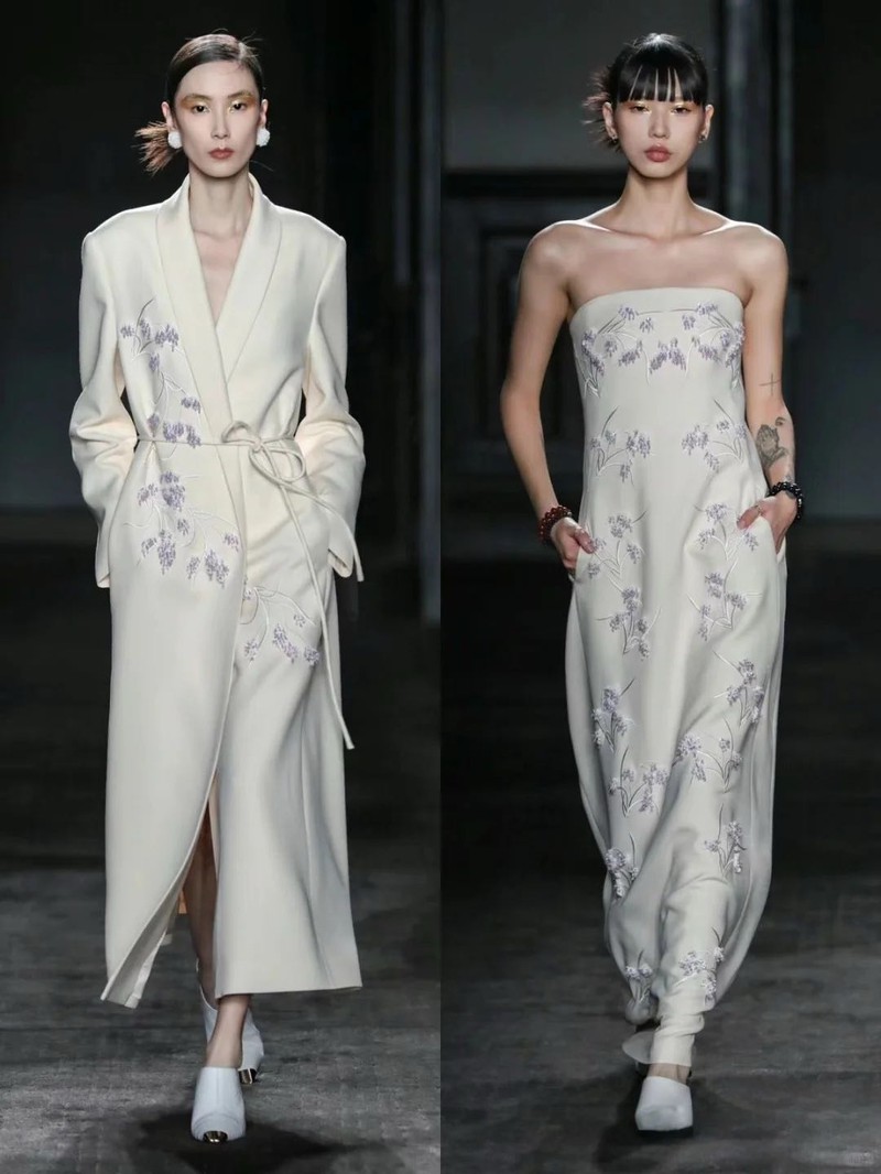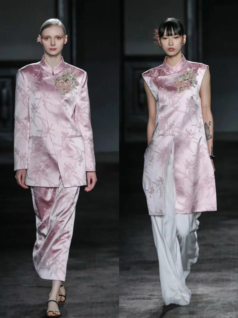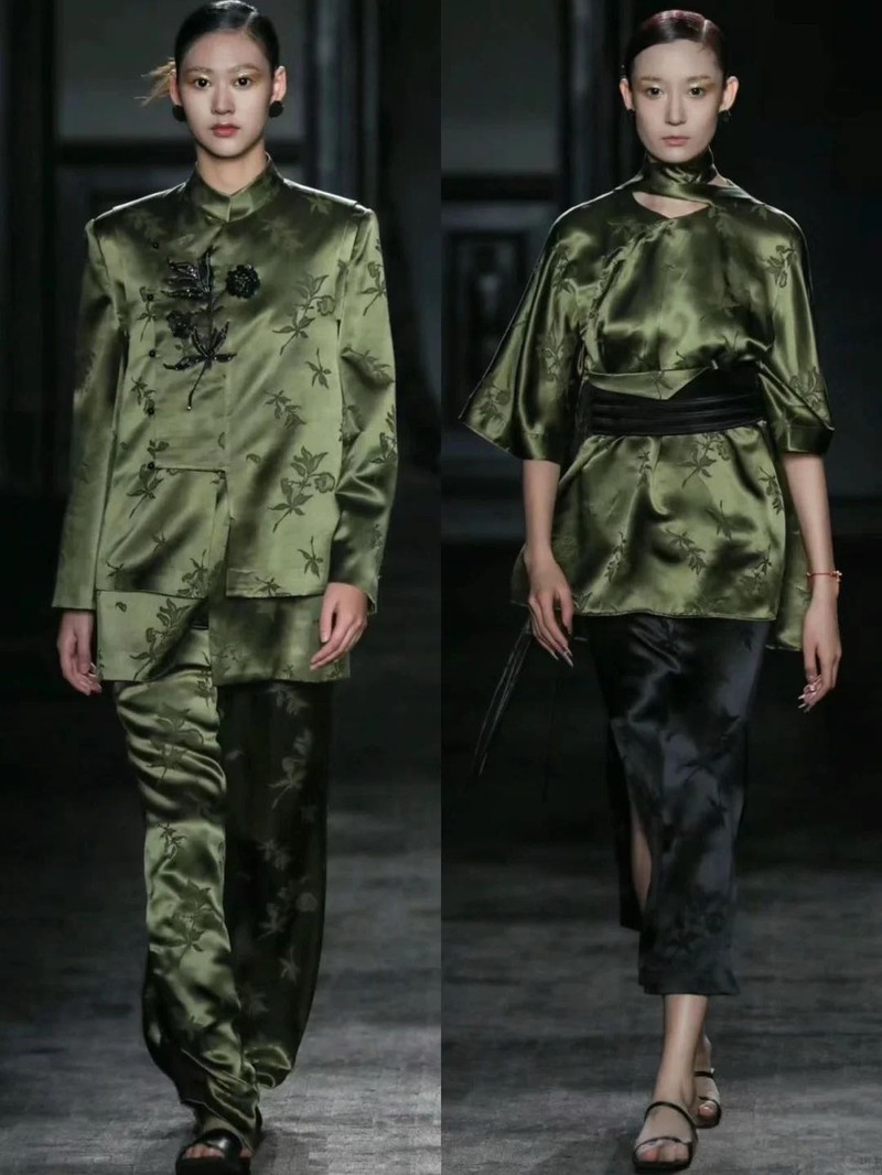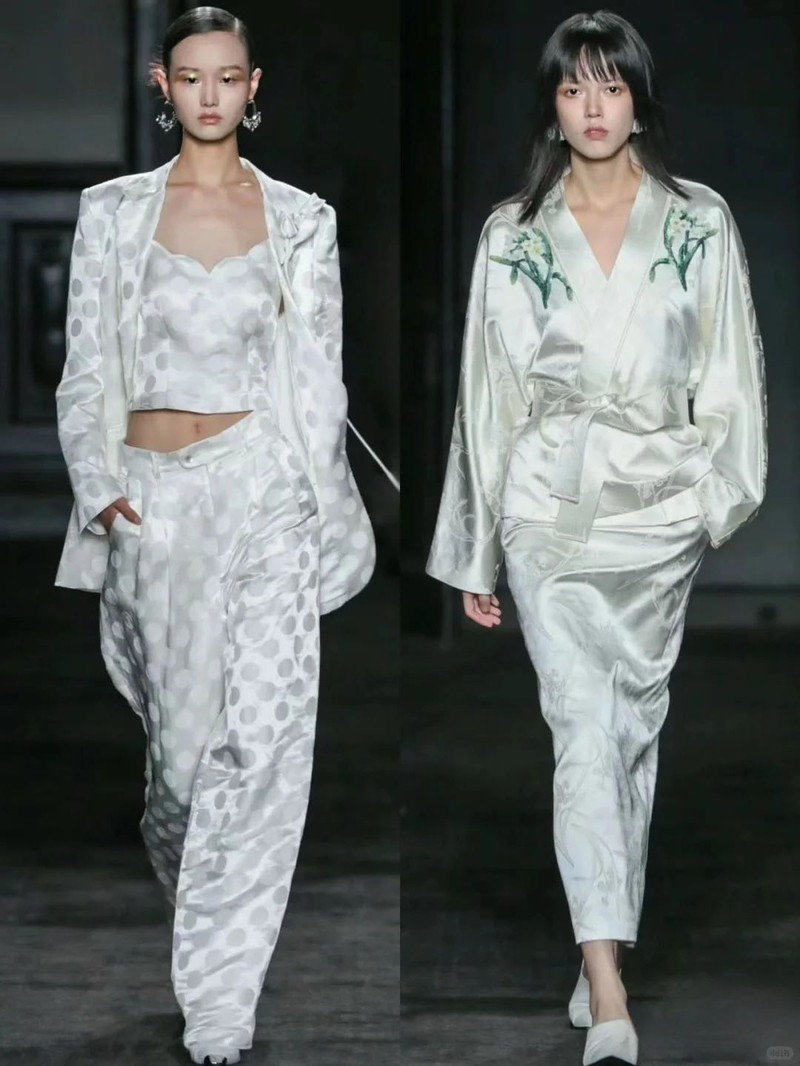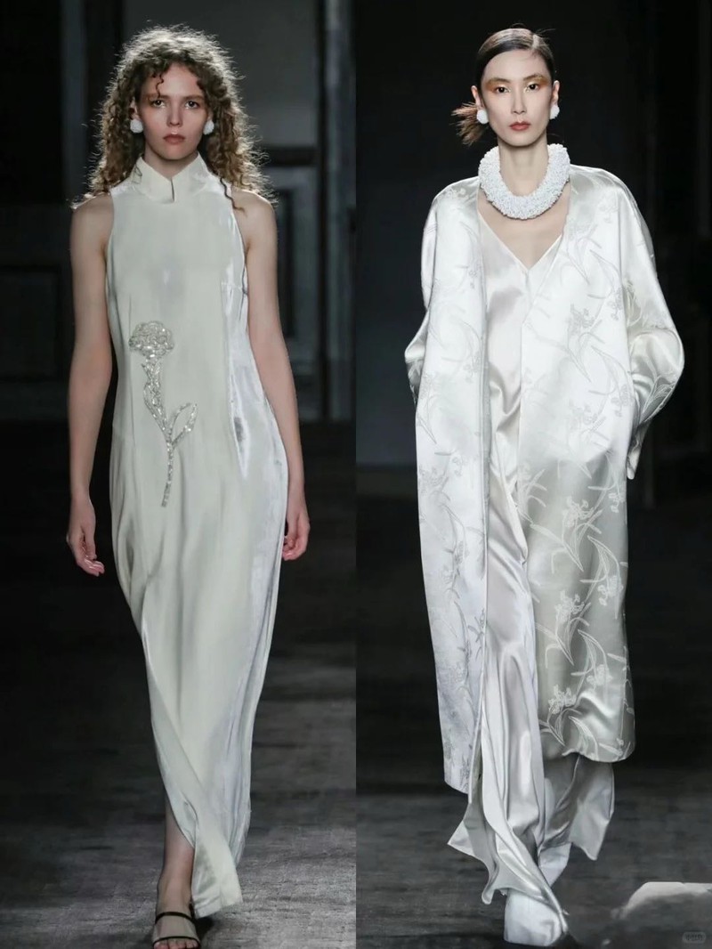 其中有采用绸缎面料,奢华又优雅,表达了一种没有轮廓和定义的美,强调美是一个过程和状态。编织一场独属新中式的浪漫。