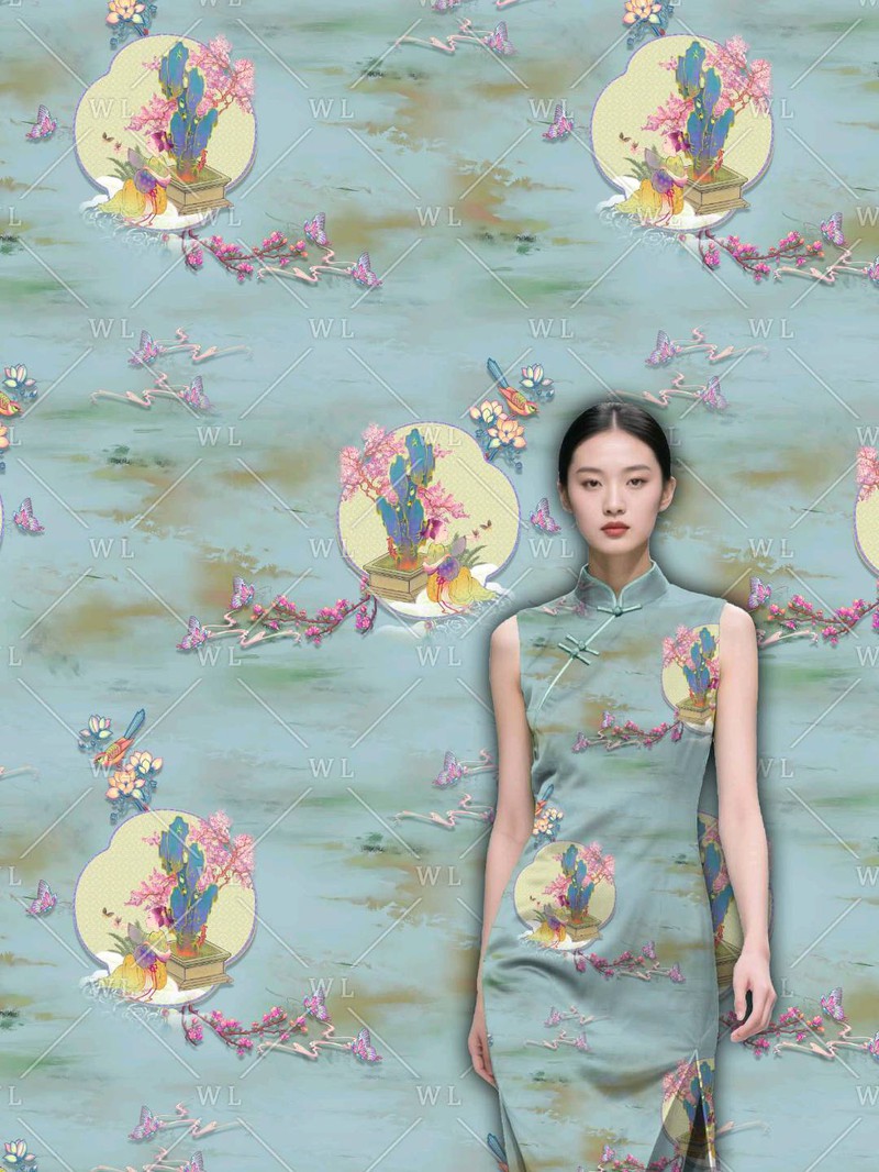 关键词:数码印花,丝绸,香云纱,旗袍,新中式