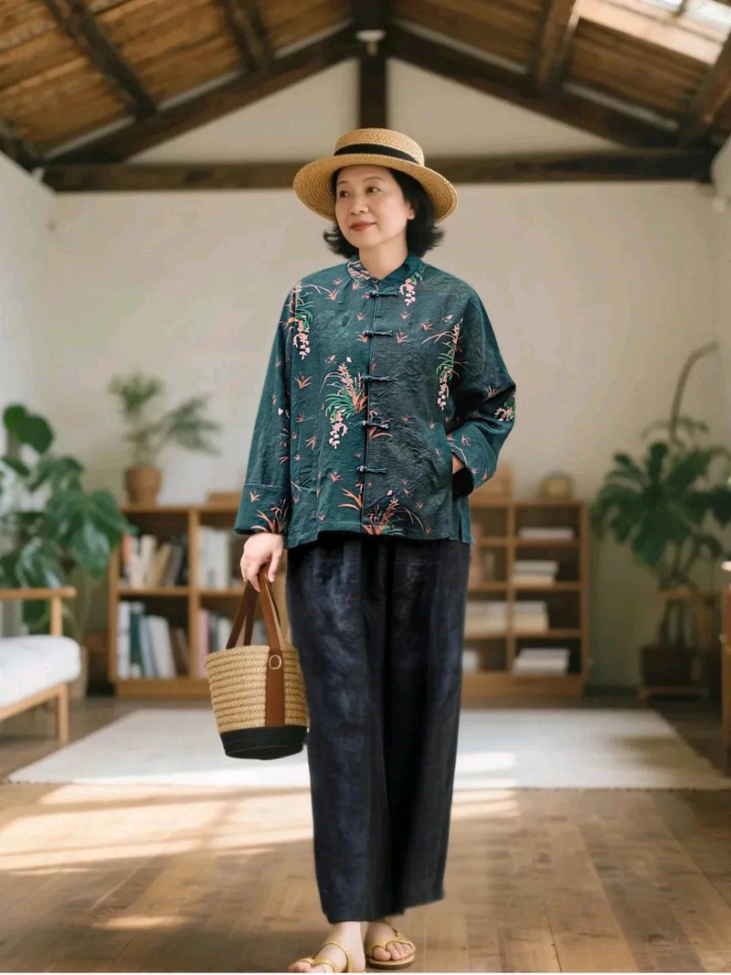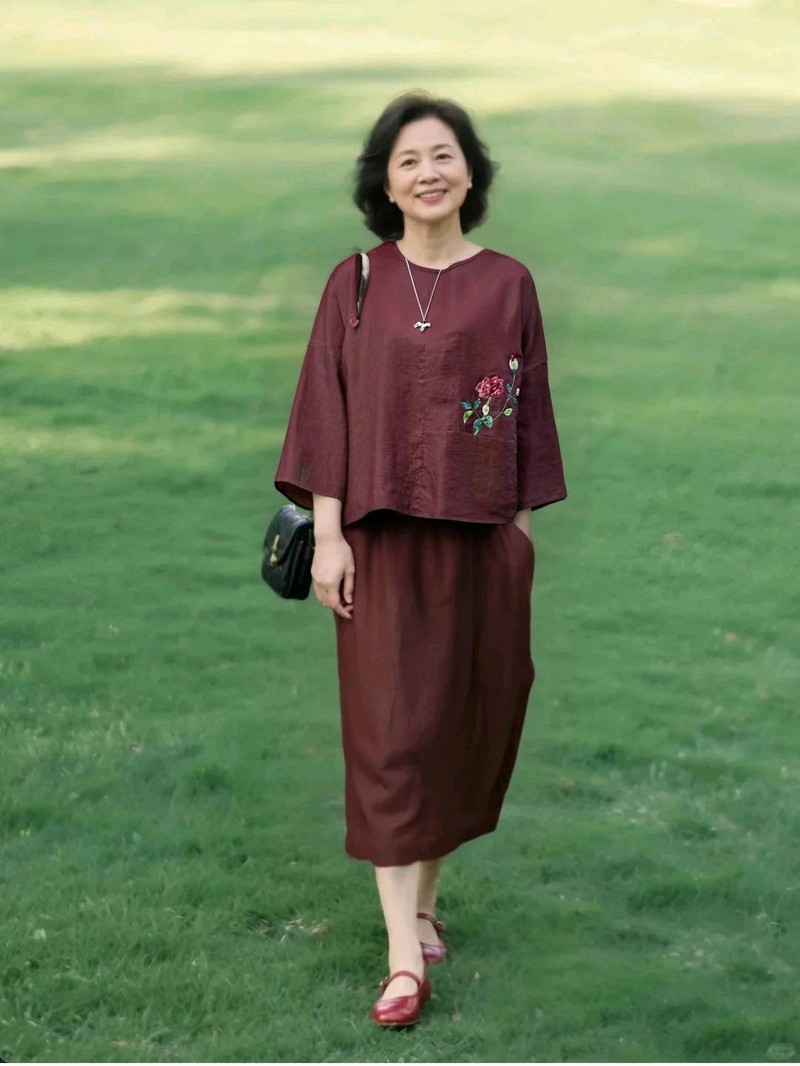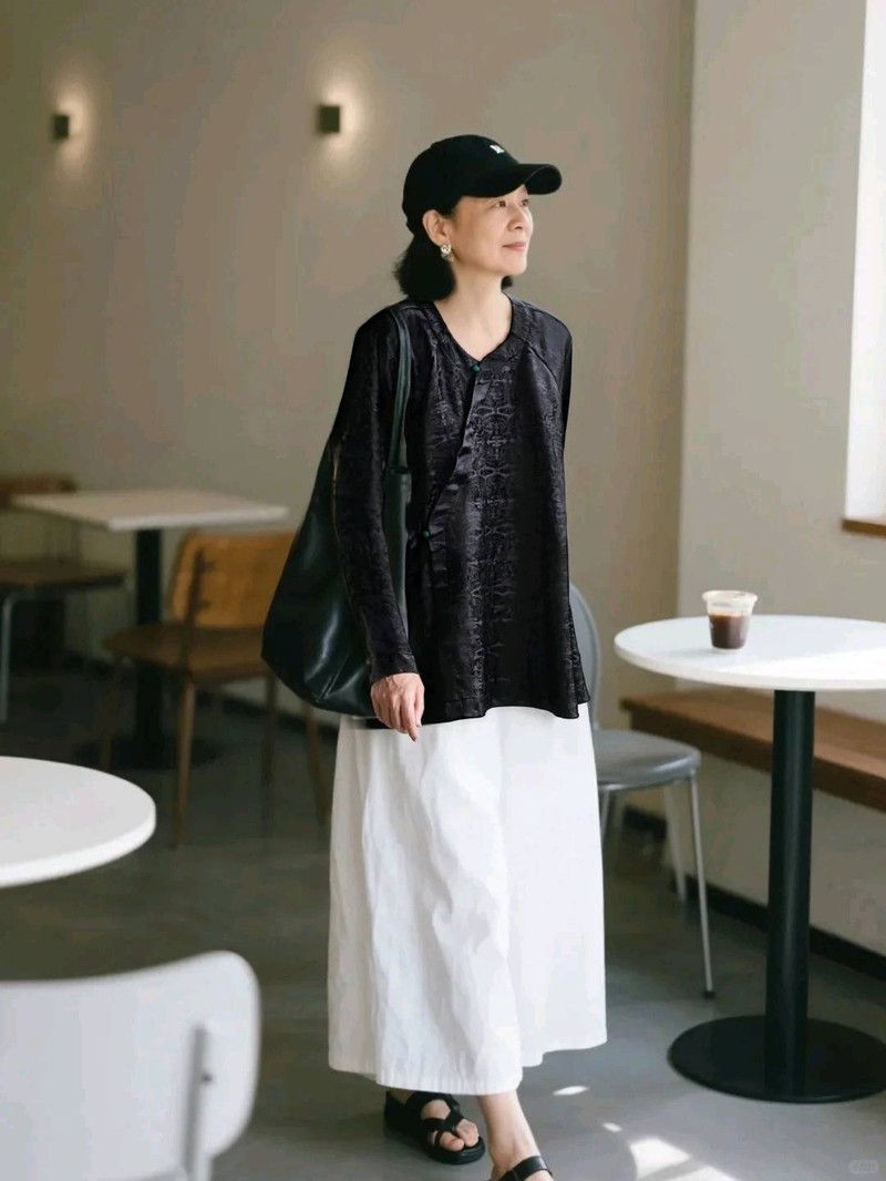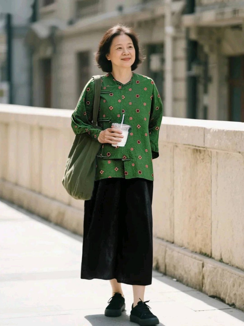 60岁和新中式的贵气是绝配!都说60岁难买衣服,去实体店清一色的“老妈妈”风我发现新中式反而是我们这个年纪的穿搭首选!cr:小知姥姥