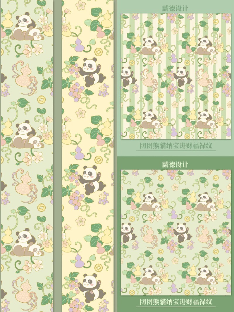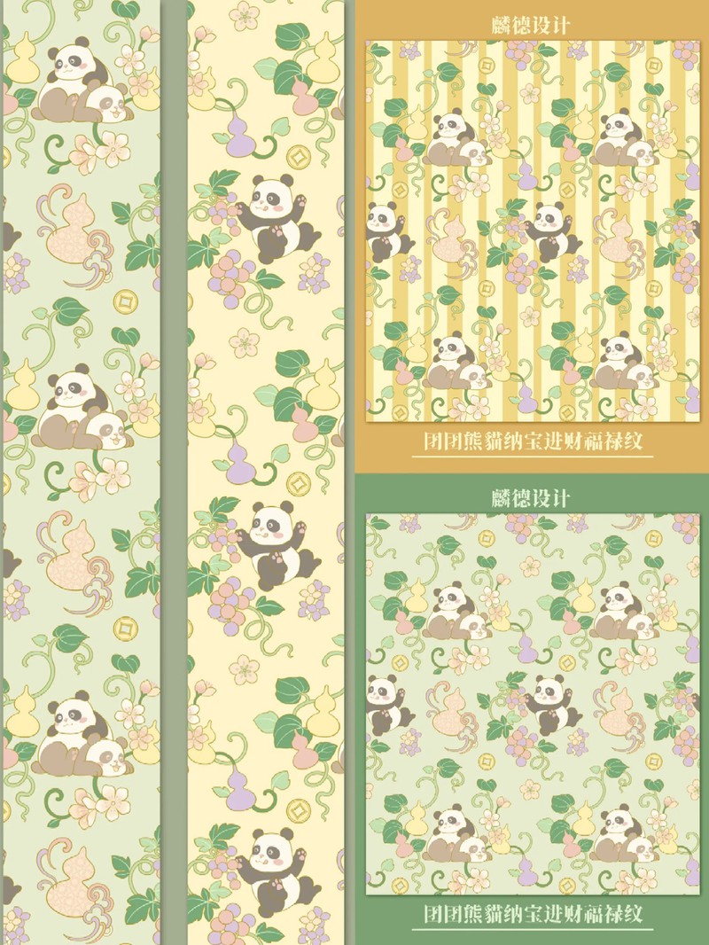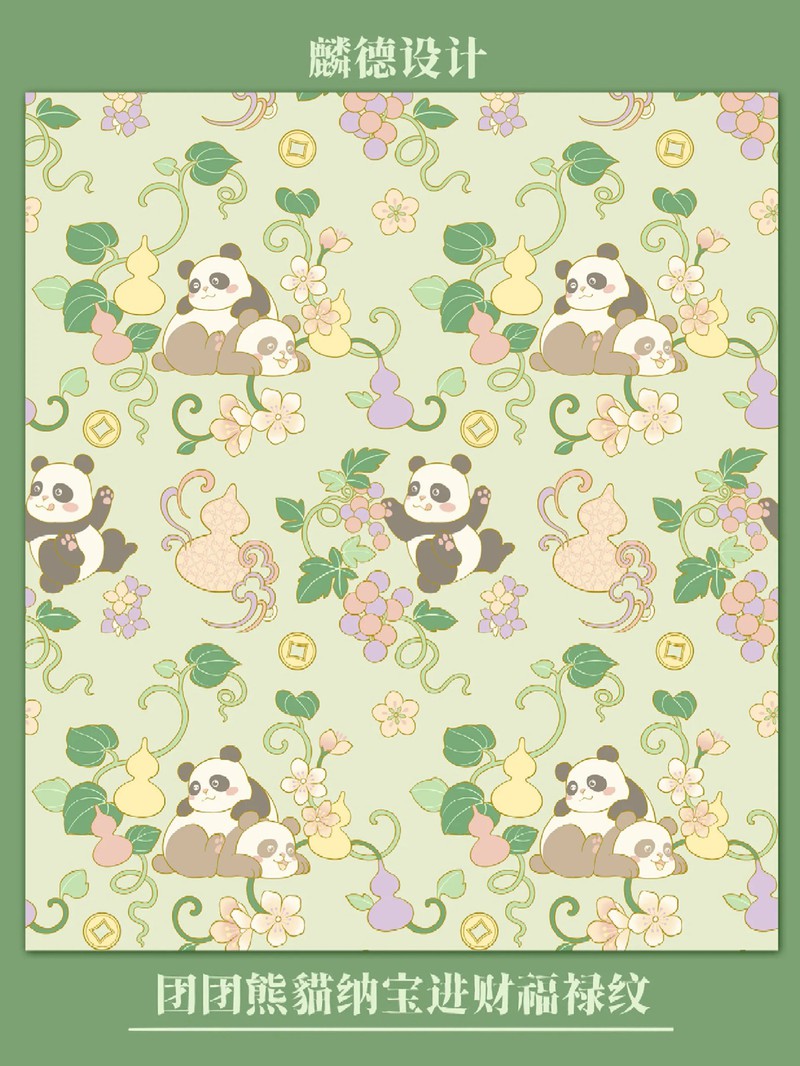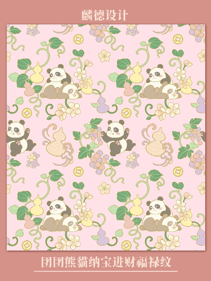 一组熊猫图案好可爱|原创国风图案纹样一张小熊猫为设计元素的四方连续图好可爱From:小红书linde1234520mm