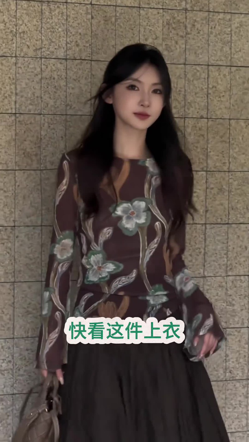 抖音爆款“手绘花”印花针织衫