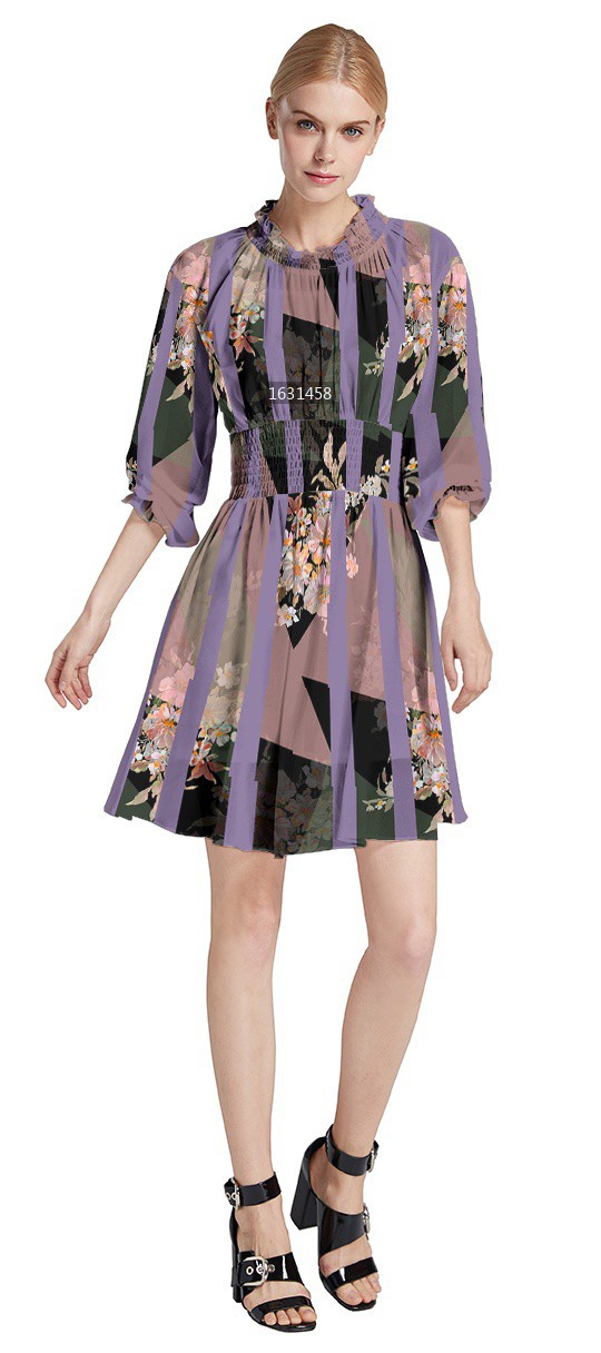 关键词:年轻女装,彩色方块,印花连衣裙,女装裙,时尚