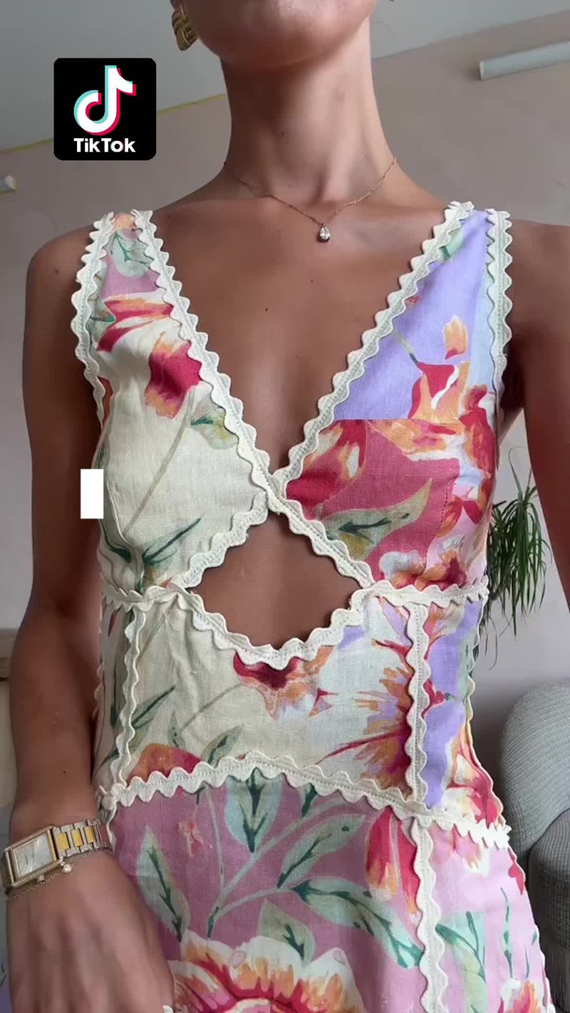 关键词:网红,博主,印花裙,Tiktok,穿搭