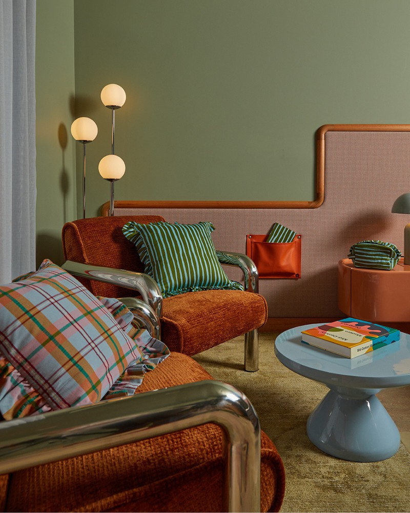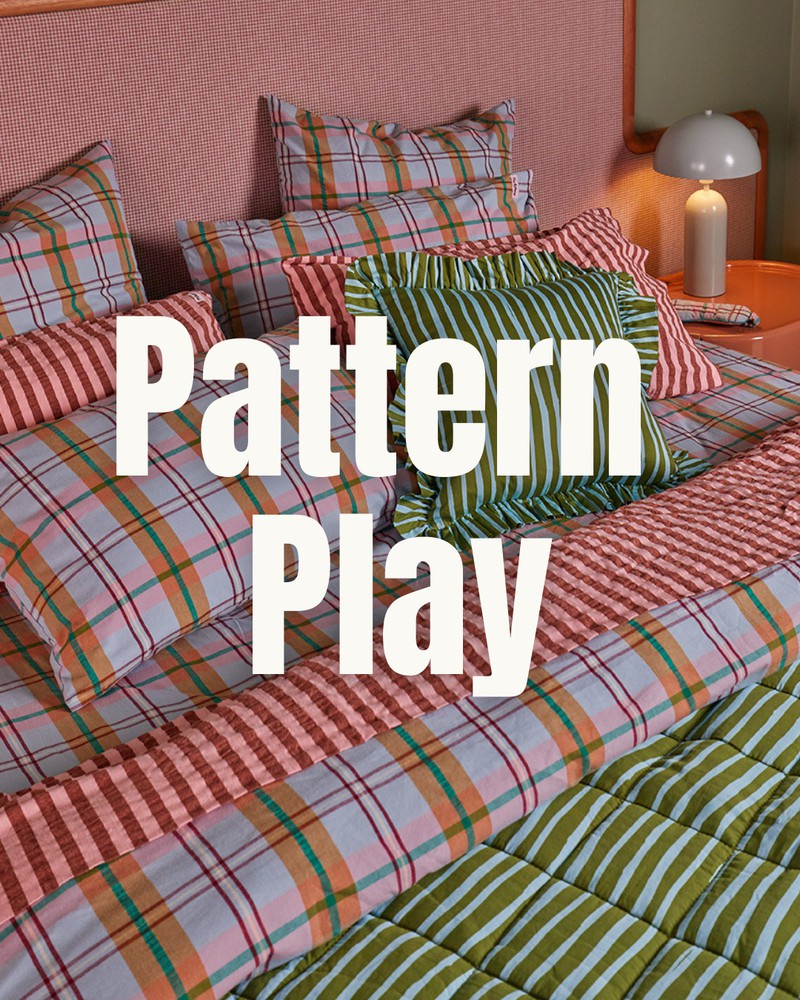 把春天搬进家!Mosey Me 的新款格纹+条纹印花家居由纺织设计师 Eliza O'Sullivan创立的家居品牌Mosey Me全新Pattern Play系列,以Confetti Plaid 撞色格纹与Strokes 清新条纹为核心,格纹融合粉蓝、暖橙与酒红,活泼跳脱;条纹以橄榄绿配浅蓝,沉稳治愈。两种印花可自由叠搭,覆盖床品、抱枕、家居服等全品类,用鲜活色彩与趣味图案,为家居注入复古童趣感。