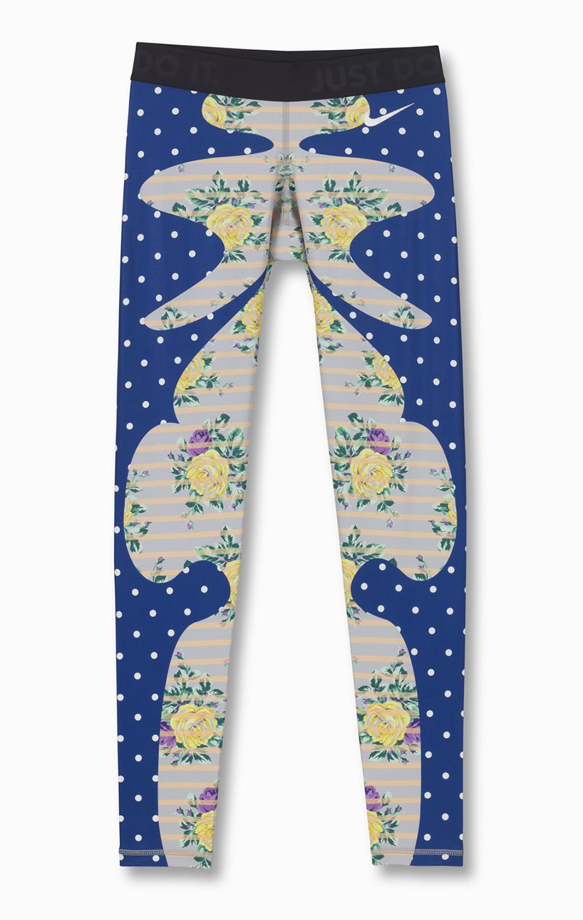 定义耐克服装的这种大胆的混搭逐渐弥漫至更多领域,连垃圾摇滚和说唱乐都受到影响,其中耐克创造的一些主要图案已逐渐成为一种文化符号。2010年,一款印有骷髅图案的黑色紧身裤标志着“tight of the moment”合作限量版紧身裤活动拉开帷幕。每个月耐克都会联手艺术家推出限量款紧身裤,印花图案更为丰富,包括夸张的佩斯利印花、波尔卡圆点、玫瑰、棋盘格等等。随着活动进行,耐克的印花紧身裤也逐渐由运动裤变为全球追求时尚度女性日常必备的潮流单品。