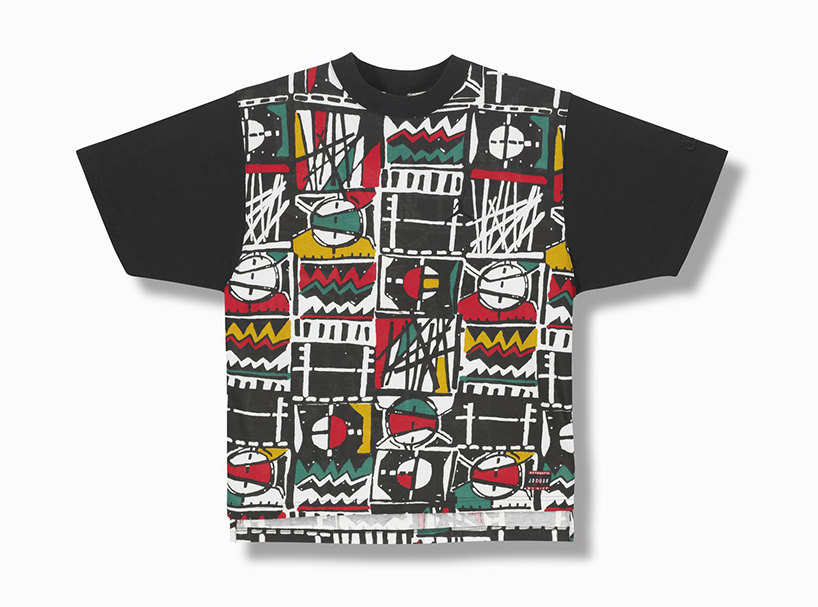 1983年,耐克设计部门首次推出了一系列包含图案但相对保守的T恤。这一系列没有任何特定图形特征的产品,恰恰也提示了耐克公司:建立一个包含体育精神与运动的图形系统是十分必要的。于是,在1985年,耐克推出了首款满印花产品,粉色、白色和红色的取自鞋底形态的图案和金色杠铃图案搭配黑色背景,十分突出。这些首创设计的图案已经超越了单纯的装饰,而是将耐克的品牌价值与外在影响紧密结合在一起,这里的外在影响包括文化潮流、历史参照及世界级体育赛事等。
