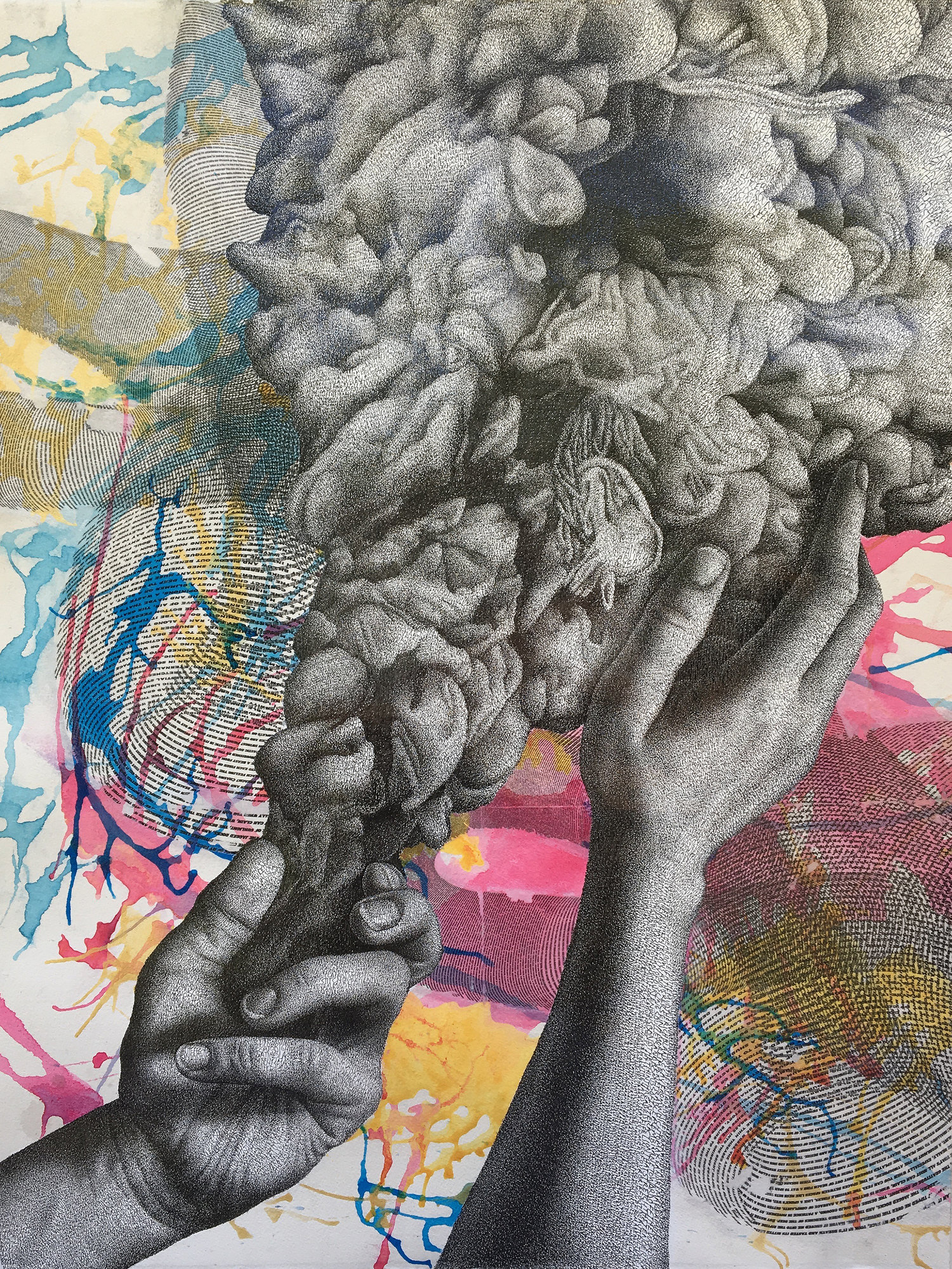 尽管从远处看不到,布莱恩•巴伦苏埃拉的画形式实际上