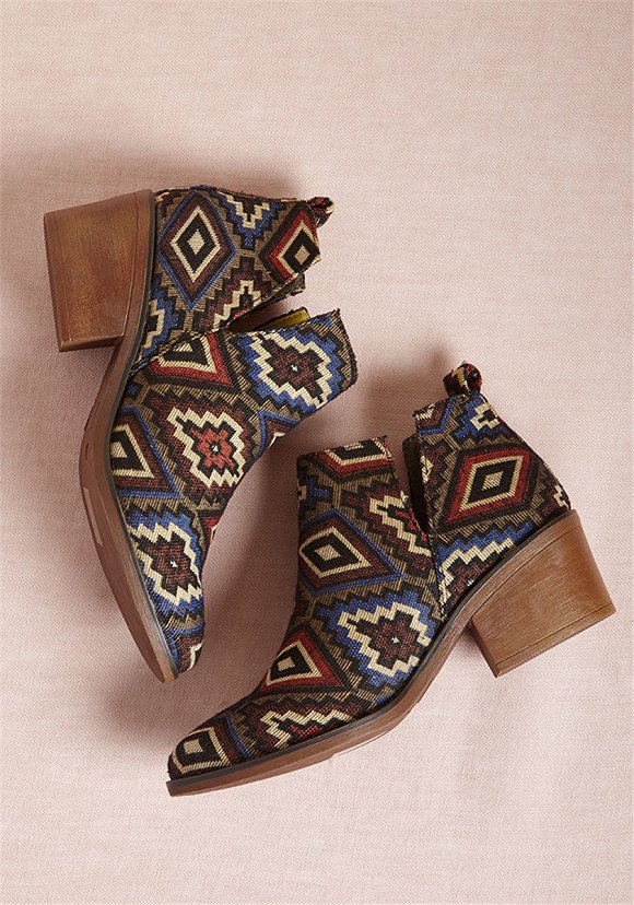 还有一些条纹更像是波西米亚风格的延续。复古的颜色搭配上视觉上更加复杂的纹路,与其他印花靴子相比,这种风格更适合度假、街拍,与普通的短靴相比,它更能配得上秋季的色彩斑斓。