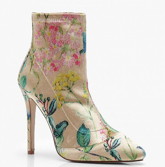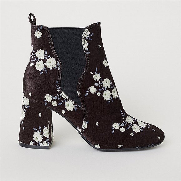 价格更低廉的替代品也有不少,比如说黑色为底色,配以白色花簇的H&M短靴,或者Boohoo的花卉袜靴。但就配色来看,后者对穿着者服装搭配的把控力显然有着更高的要求。