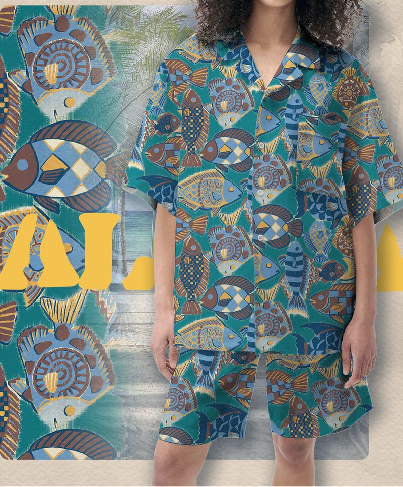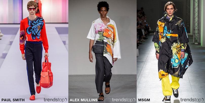 本季的热带花卉主题,主要通过非相片形式的,大尺寸叶子和热带花朵的造型,得到了印花图案的提升。尺寸是关键,图案越大,越能吸引人眼球。对现代艺术的诠释,通过小的调色盘得到了简化。