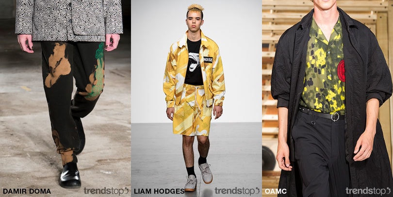 经典的迷彩图案,通过数字化处理和解构重组,获得了更具流动感,更印象派的美感。不规则的重复图案,重叠印花的效果,营造出像素化,曲折的数字感。对颜色的强调,一改以往传统的卡其色迷彩图案,一统天下的局面。