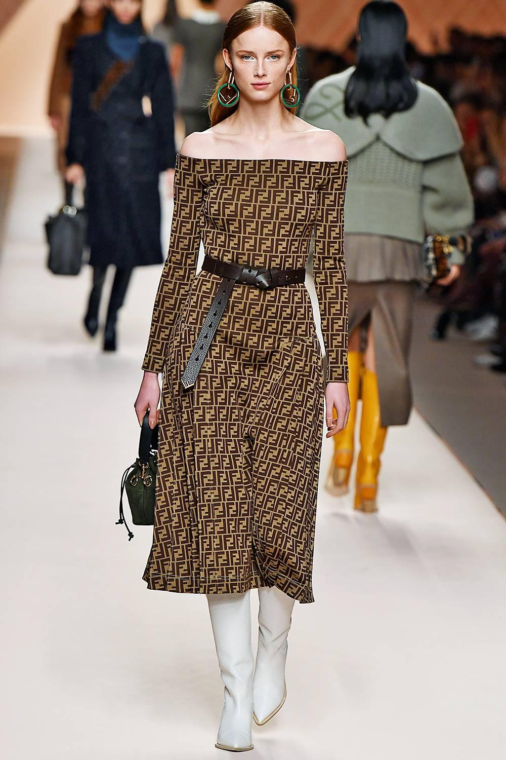 从Fendi的米色和巧克力字母组合的衣服和配饰到Chloé的整套look,棕色比黑色多了许多“高级感”和“贵族感”。