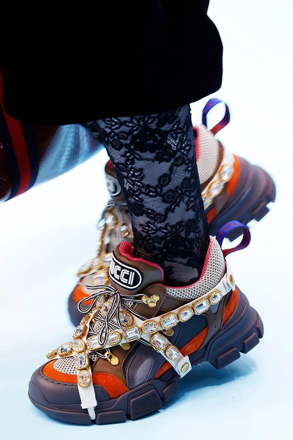 从Gucci搭配巨型珠宝的运动鞋到Ashley Williams广受欢迎的新款,各种口味的水晶单品,从朋克少女到名媛高跟鞋,媚俗水晶成为主场。预计世界各地的电子商务珠宝部门会购入水晶了。