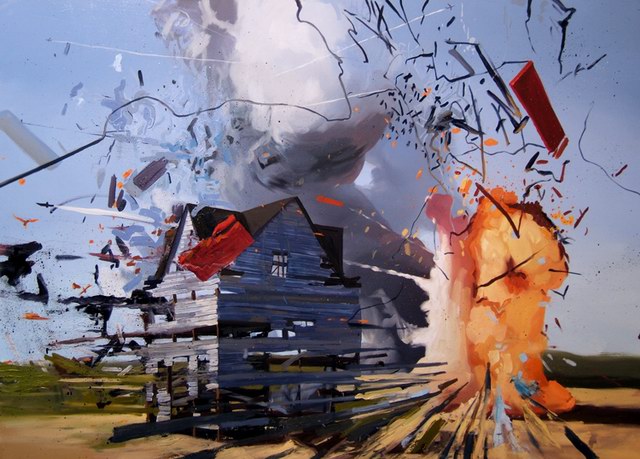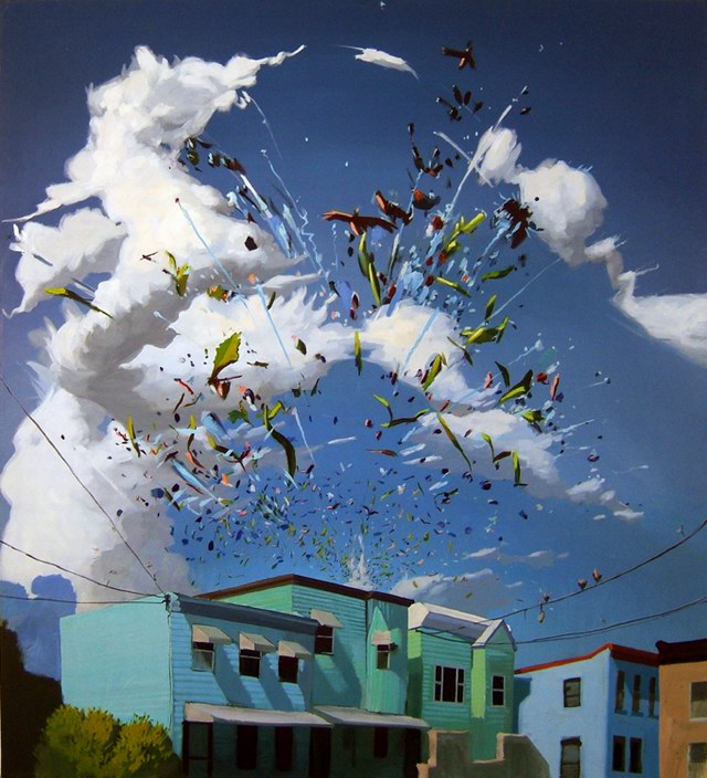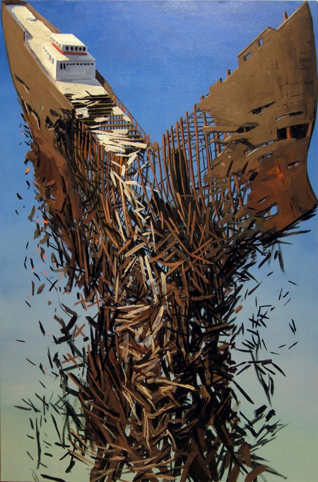 自山竹先生光临广东一带后,城市面目变得有些凄惨,就像这个艺术家的作品一样,宽广的想像空间世界里充斥着刺激与惊奇,是那样有节奏的甚至梦魇般的不确定性。但是这些怪诞的,壮丽的灾难性的瞬间却不失优雅,甚至有些凄惨的唯美”。