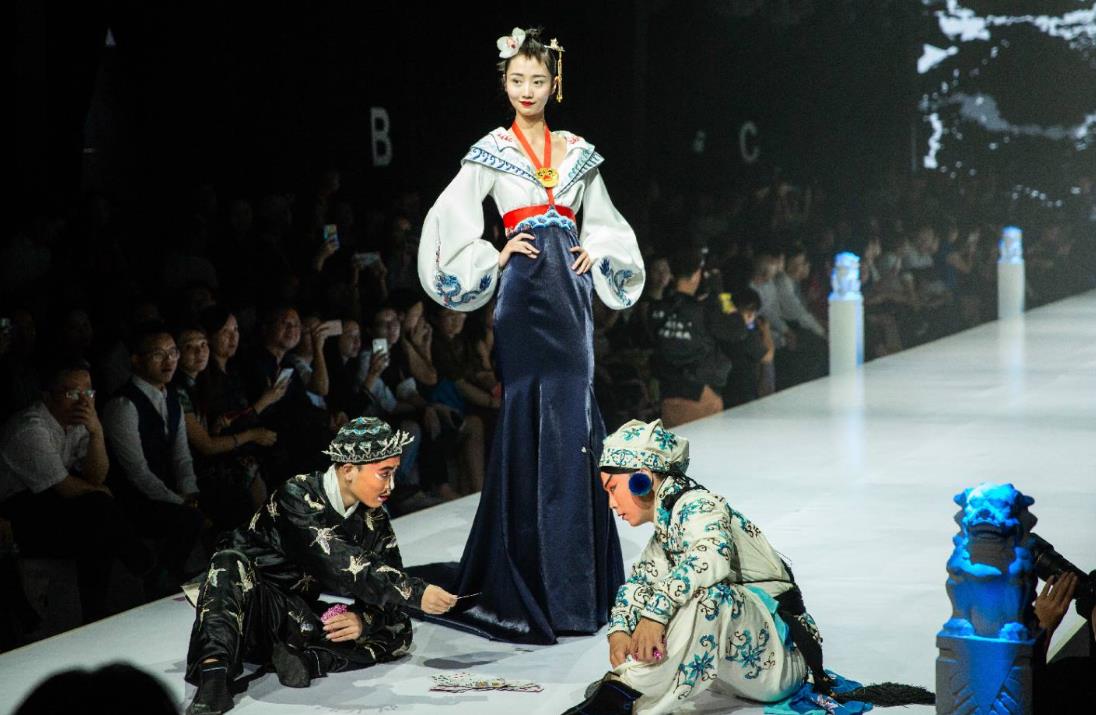 从中华文化宝藏中汲取灵感,用时尚的匠心剪裁传统的绮丽。此次亮相文化特别邀请国内著名的80、90后新锐设计师,从经典的京剧曲目的人物装扮中寻找灵感、延伸创意,重新解构美学元素和价值。现场演出的近百套华服不仅在设计上精致考究,而且均为纯手作打造,凝聚匠心实力,传递出国风国服的全新艺术风格。