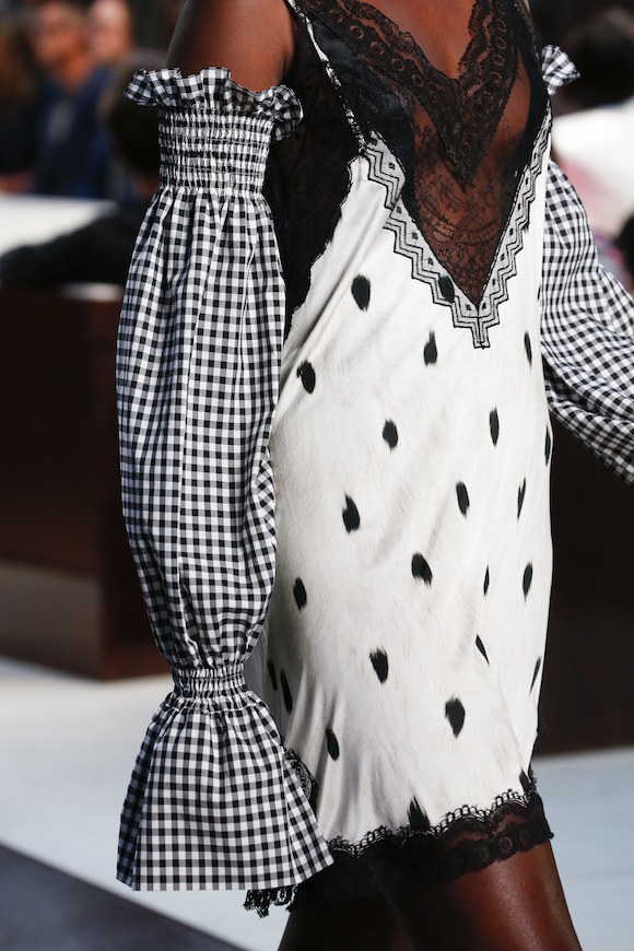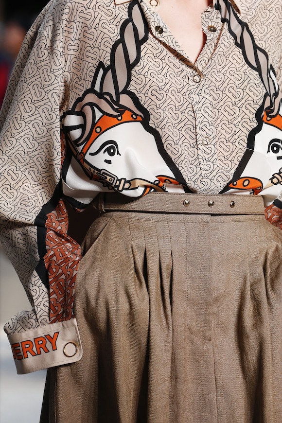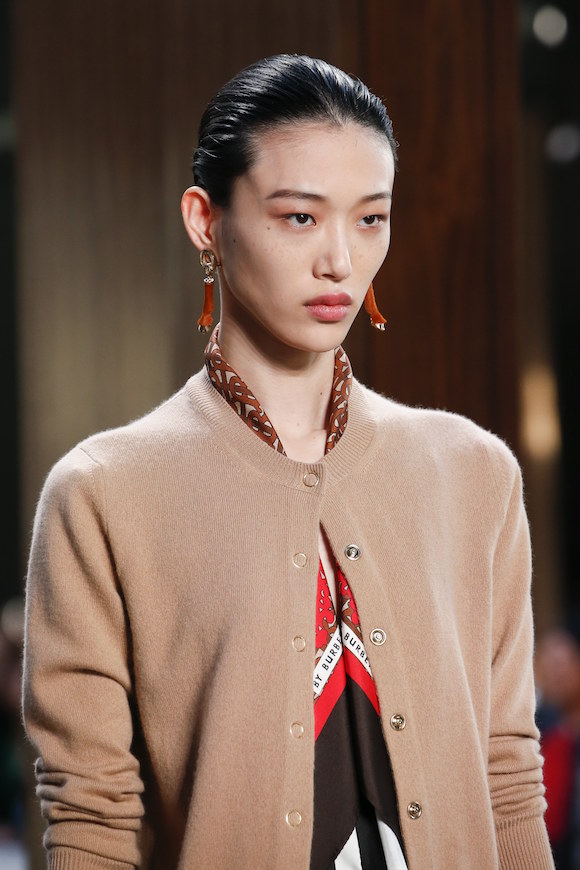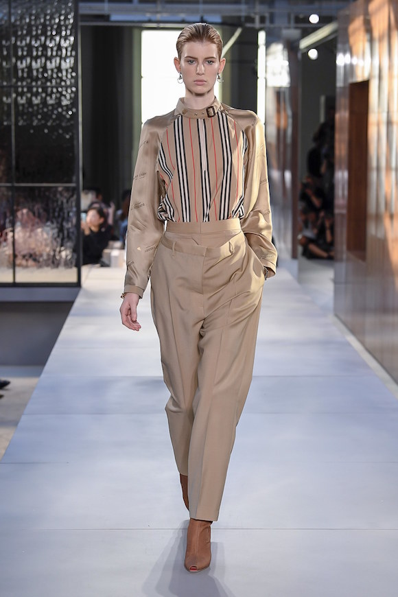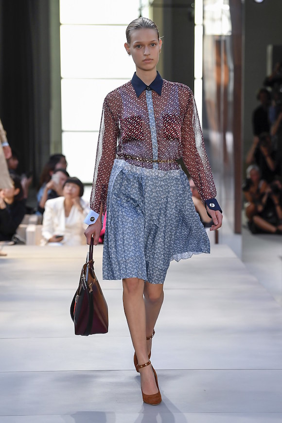 经典的风衣被演绎得相当保守,动物纹的加入也可能是上一辈消费者会喜欢的样式。但经典格纹则被玩出了新花样,有真丝衬衫,也有编织外套。到了秀的后半部分,蕾丝、皱褶和花边又出现了,Riccardo Tisci可能还想在年轻人中圈一波粉。另外,Riccardo Tisci为Burberry设计的新印花也出现在面料上。