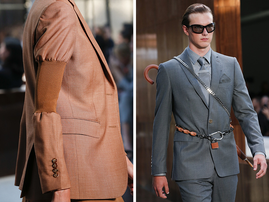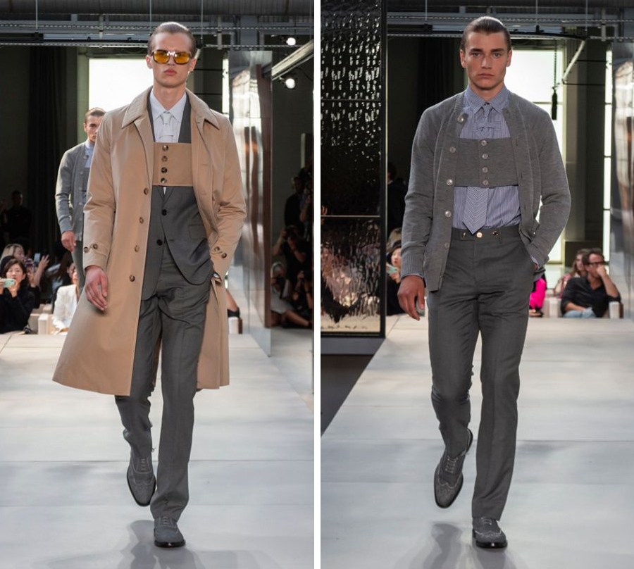 因为男女装合并走秀,这是一个呈现了超过 130 套造型的庞大系列。设计师把它分成了 3 个部分,第一部分为 Refined,重塑品牌经典。这个部分 RT 交上了围绕 Burberry 风衣、西装、男士夹克、格纹衬衫等经典单品的半命题作文,同样没有迫不及待地将它们进行年轻化改造,更多地是保留了设计中的经典气质,但加入了一些让人耳目一新的细节。