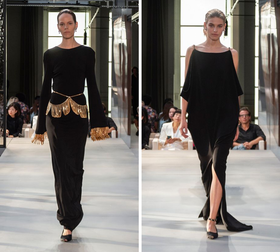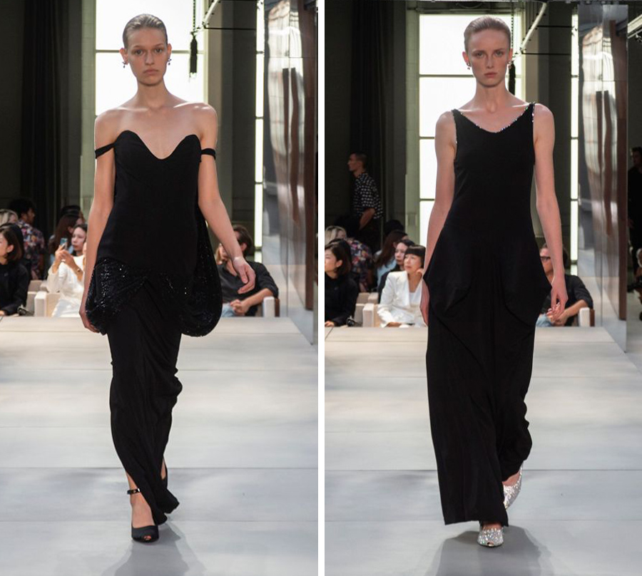 最后一个部分是 Evening,压轴展示了 7 款礼服,均以黑色呈现,非常优雅。也提醒着人们 RT 作为高定设计师的履历。