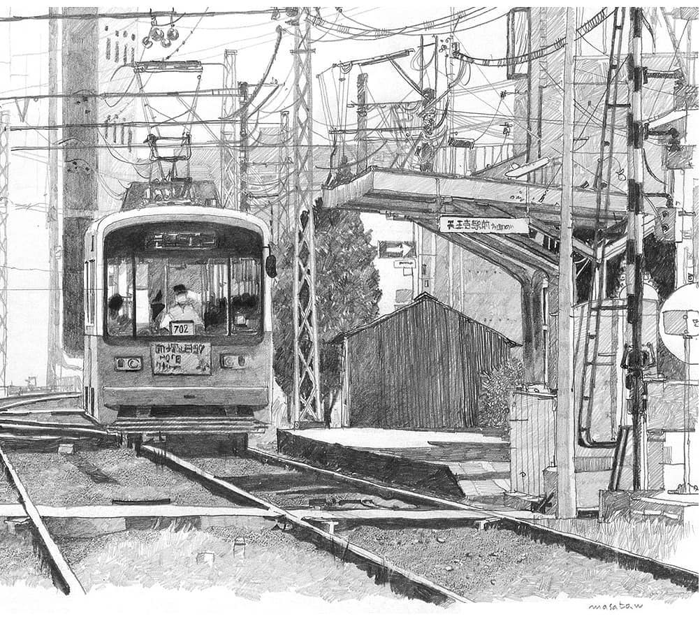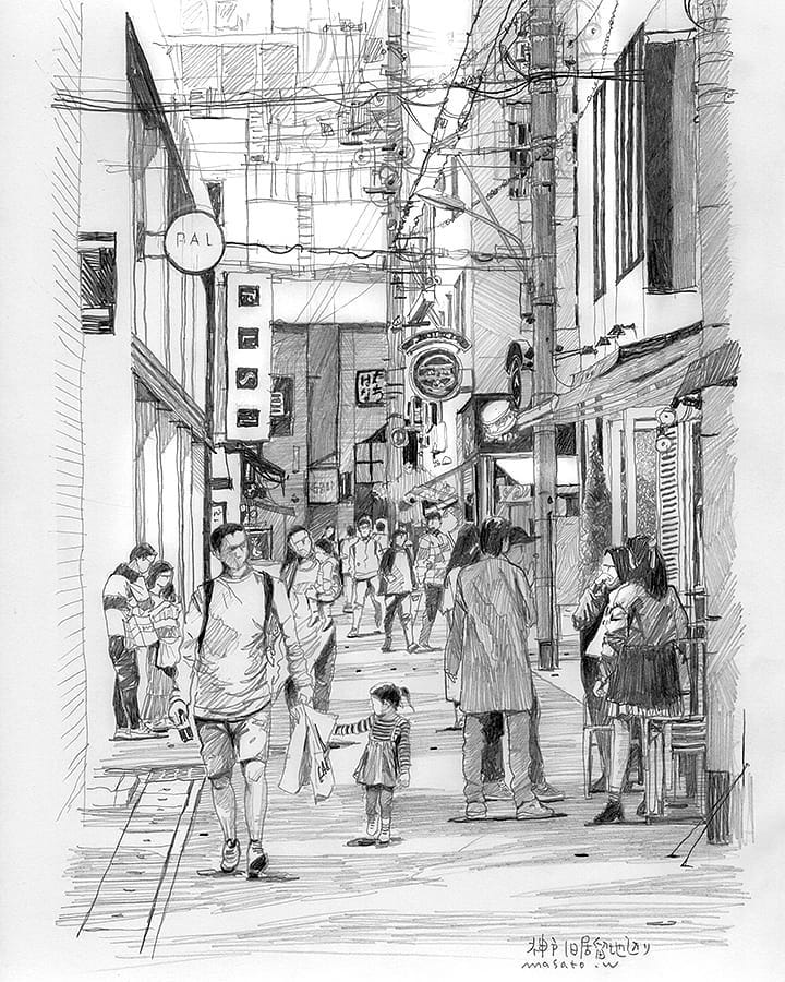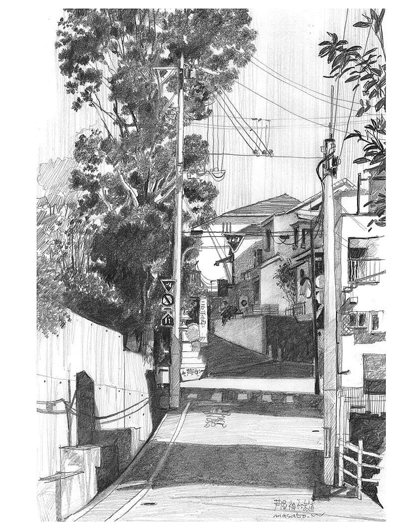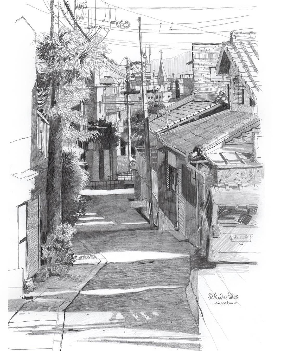我们曾经报道过一组日本水彩画家渡部政人(Masato Watanabe)的水彩作品——城市小景。今天来欣赏一组他创作的铅笔速写,大部分为街景,黑白色调给人一种日本漫画场景的感觉。
