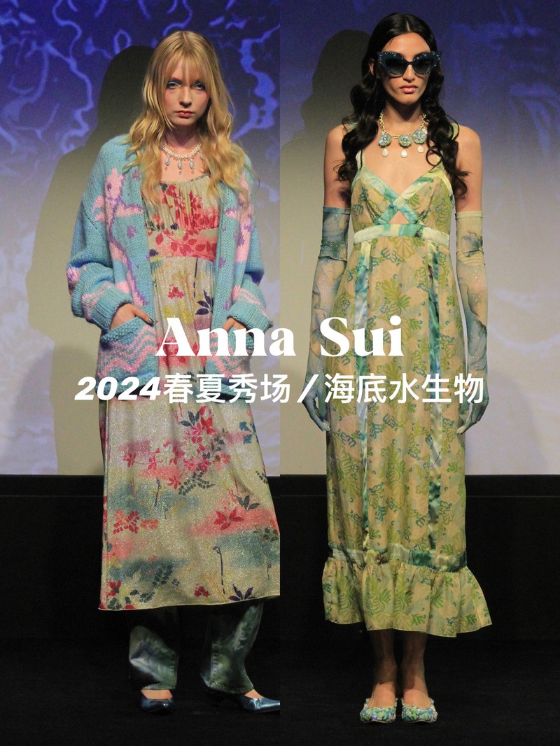 Anna Sui 2024春夏系列 海洋生物主题纺织品图案和面料设计