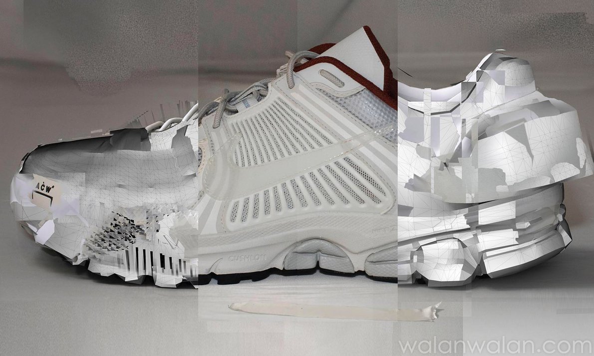 一件物品随着使用或时间推移会发生哪些变化?这同样是驱使 Samuel Ross 着手开始设计 Nike x A–COLD–WALL* 胶囊系列的初衷,而在鞋子上这些老化过程的体现,正是这个问题的答案。同时,也让它们在视觉效果上能够联想到 A–COLD–WALL* 的调性,最直接的感受是:“嗯,这大概就是这个品牌的风格“。