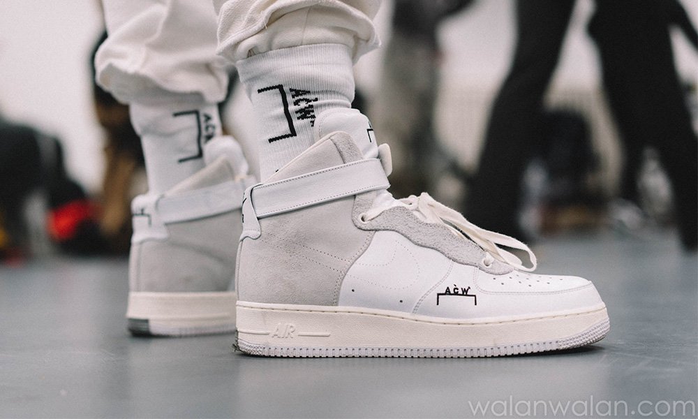 而在短短一季之后,又一双设计更为概念化的 Air Force 1 也出现在了 18 春夏系列模特的脚上。不过可惜的是,正像 Samuel Ross 自己说到的那样,它们都并不算是一个标准意义上的 “联名”,或许他觉得用 “定制实验” 来形容这次的联手最为恰当。所以,尽管情报消息不断释出,但我们到现在也未能迎来低帮版本的发售,而那双高帮版本也仅仅是在一次伦敦的 Pop-Up 上少量贩卖过,能够满足的人群少之又少。