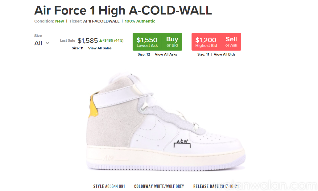 如今这双鞋在 StockX 上的价格最低也要在 1,550 美元,况且这还是 US11 码…(图片来源:StockX)