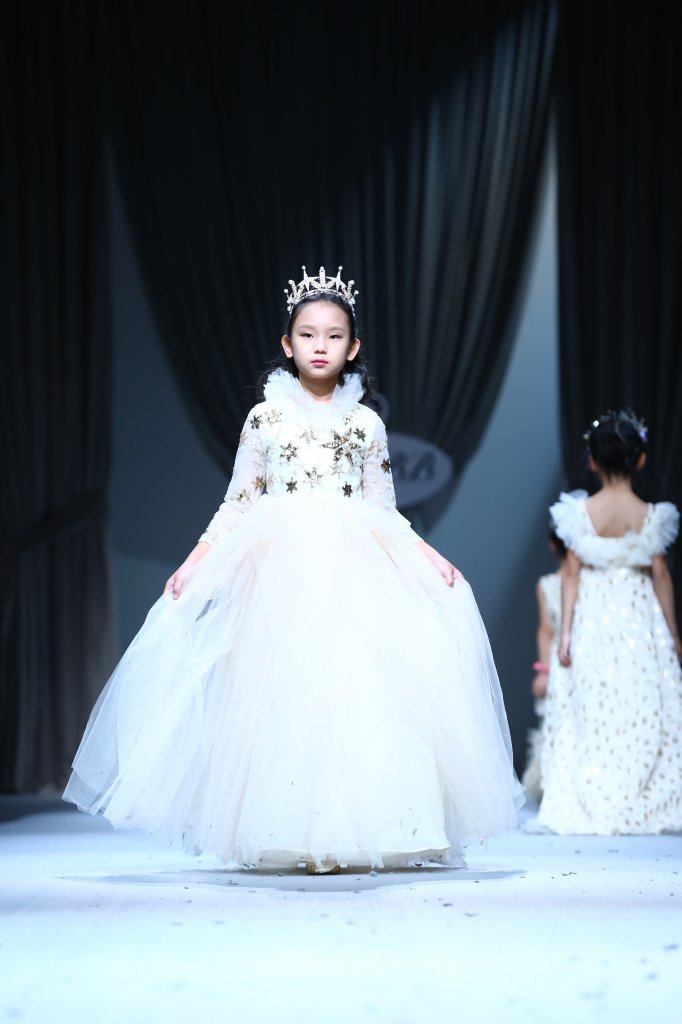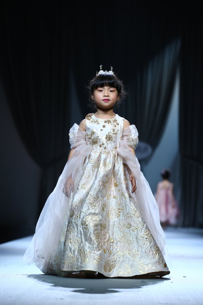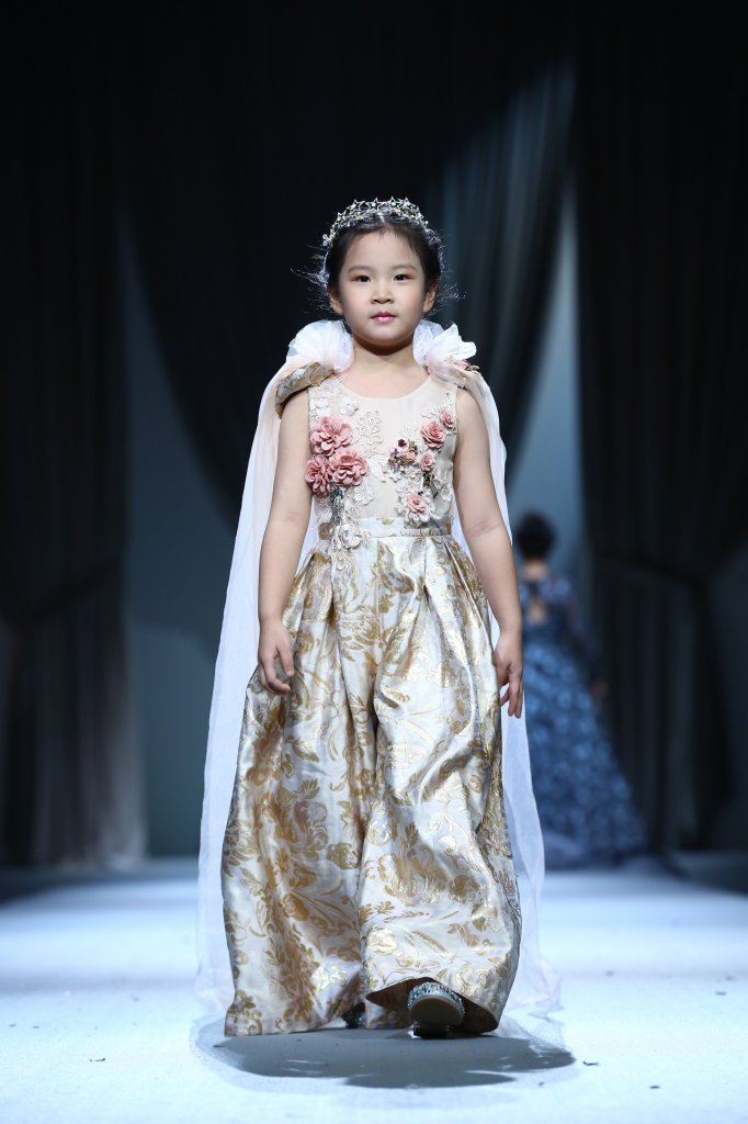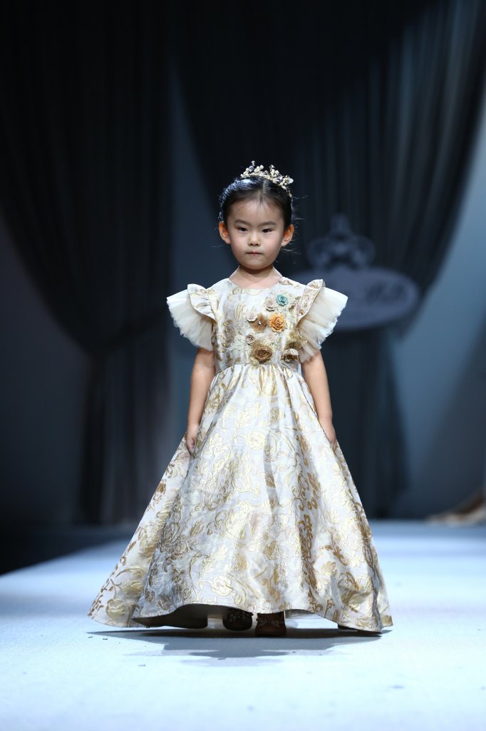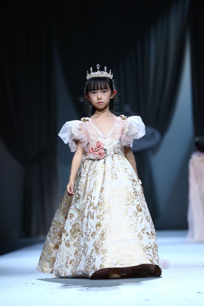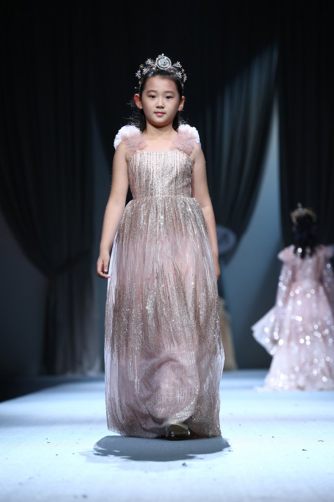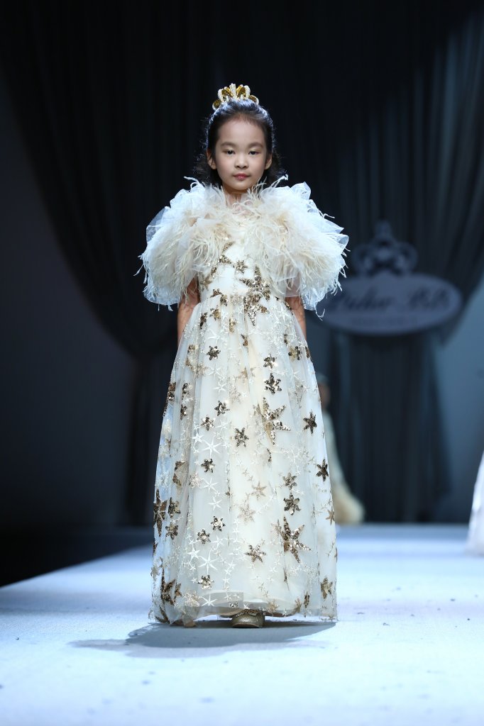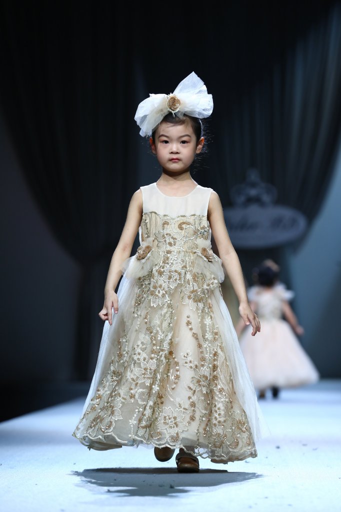 以“Always with U”为理念的香港童装品牌Pider BB首次登陆北京童装童装周,设计师靳小潞受到童话故事《小王子》的影响,将爱心、玫瑰花、星辰、披风作为总要组成部分装点在礼服周围,并从维多利亚时期和中世纪文艺复兴时期中汲取古典主义,将泡泡袖、紧身上衣等一系列元素带入集合;以金色和昂贵的意大利面料以及高工艺的技术缔造法国宫廷主义风格,然后在此基础上进行薄纱的层叠,从蛋糕裙到渐变的吊带裙下摆再到前短后长的一字肩礼服...