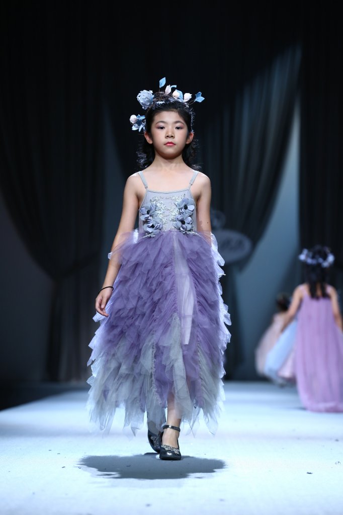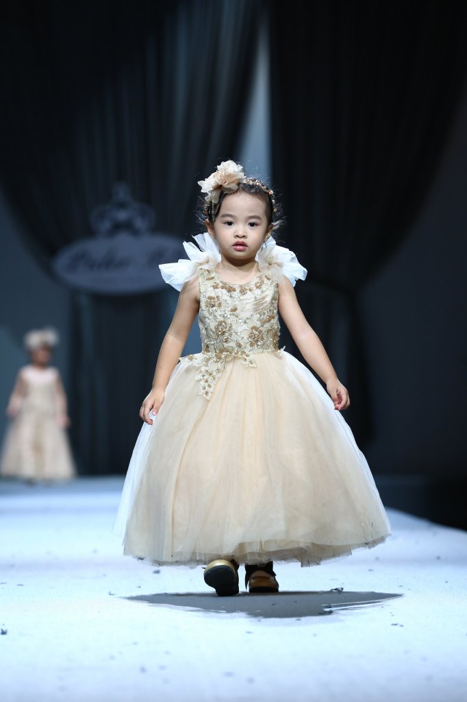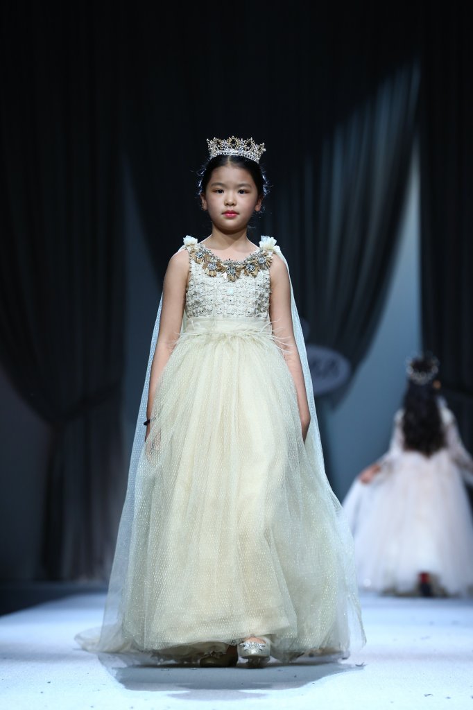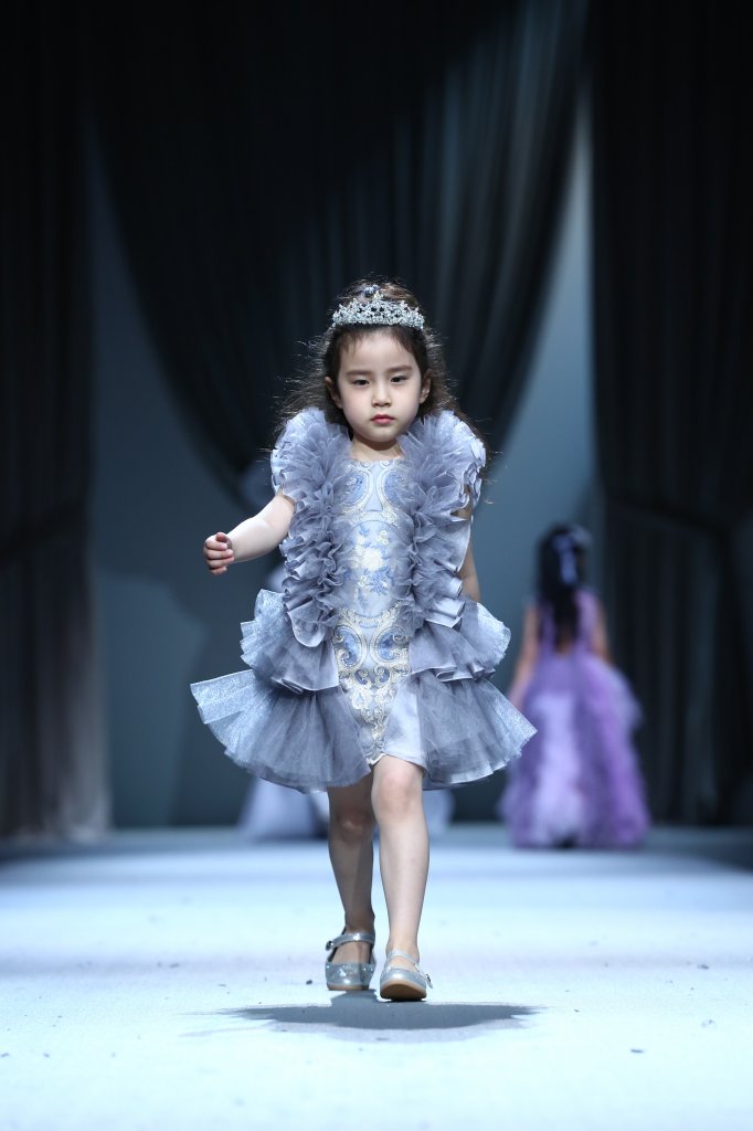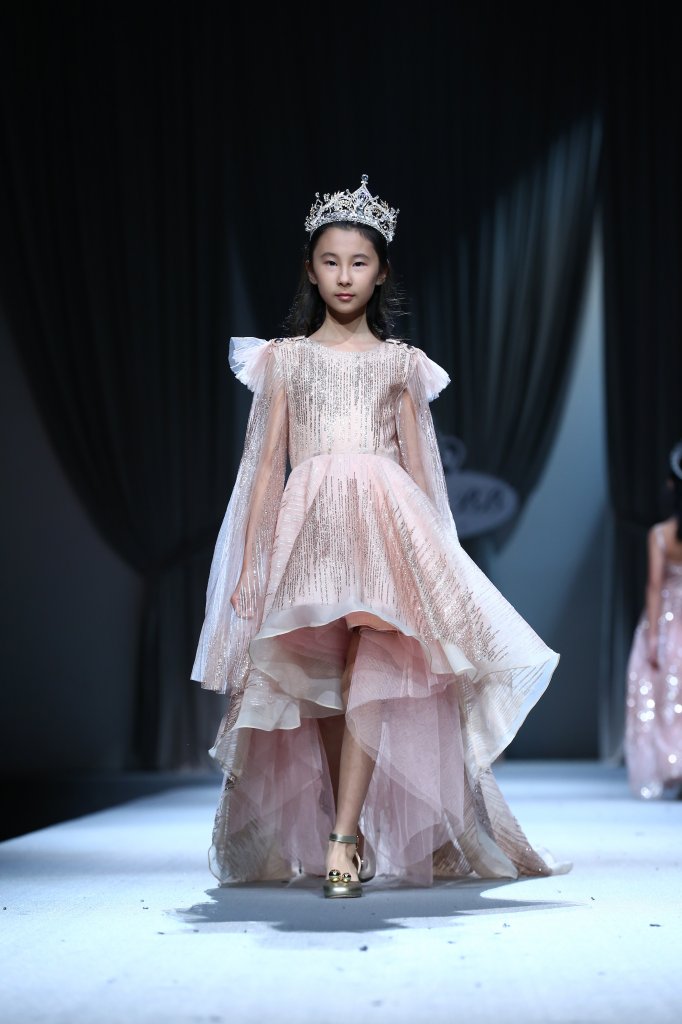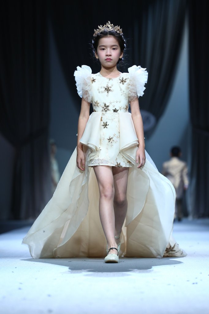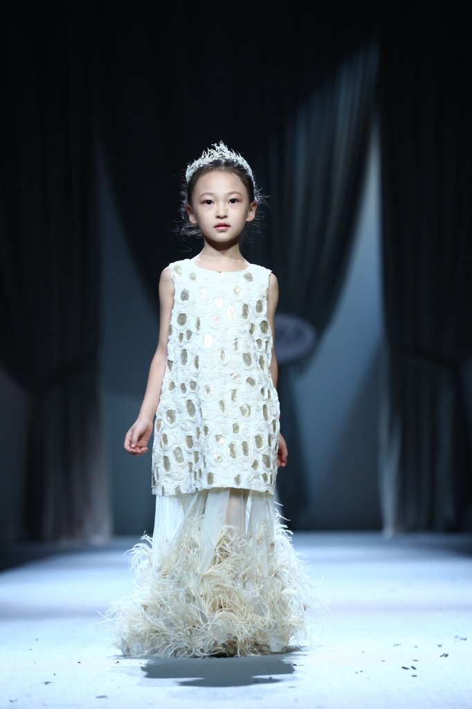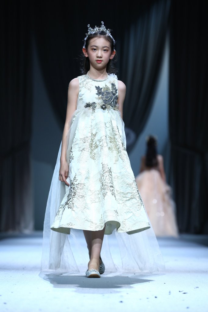 以“Always with U”为理念的香港童装品牌Pider BB首次登陆北京童装童装周,设计师靳小潞受到童话故事《小王子》的影响,将爱心、玫瑰花、星辰、披风作为总要组成部分装点在礼服周围,并从维多利亚时期和中世纪文艺复兴时期中汲取古典主义,将泡泡袖、紧身上衣等一系列元素带入集合;以金色和昂贵的意大利面料以及高工艺的技术缔造法国宫廷主义风格,然后在此基础上进行薄纱的层叠,从蛋糕裙到渐变的吊带裙下摆再到前短后长的一字肩礼服...
