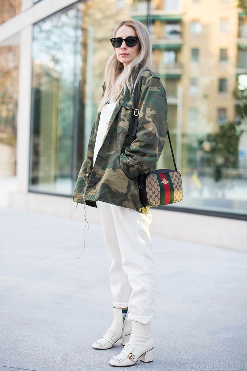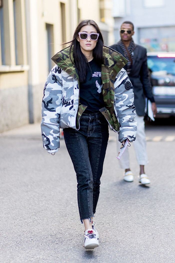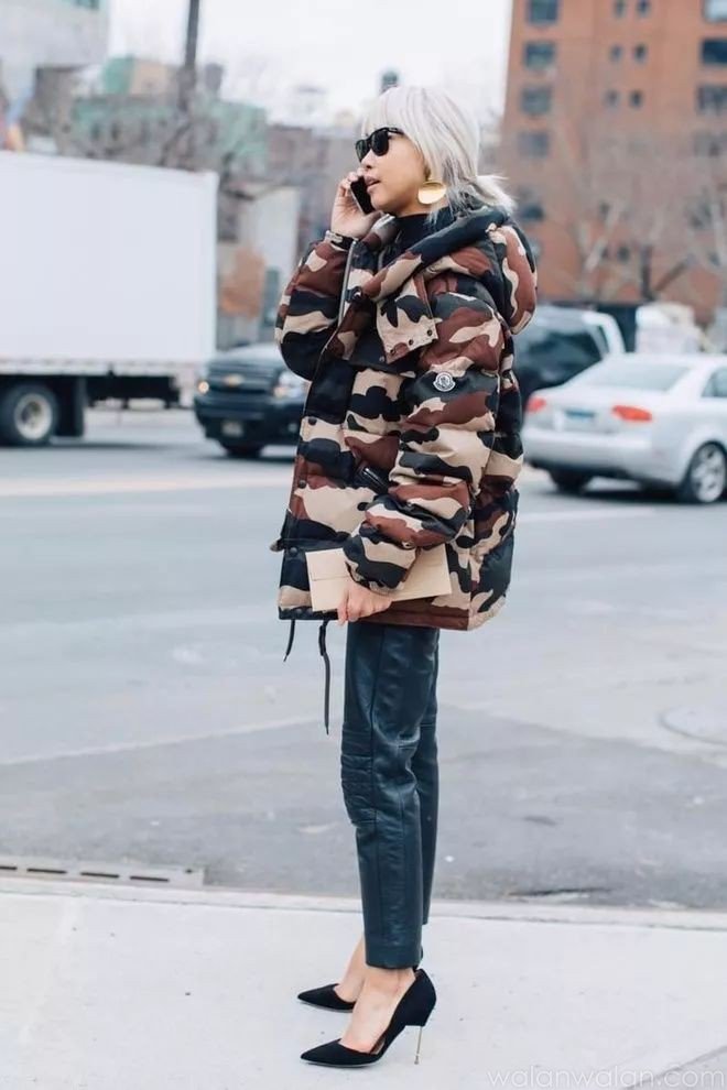 迷彩曾经是军人的标志,似乎只有教官、军人才会穿。自从设计师把这一元素带入时尚圈之后,迷彩单品就成了时尚弄潮儿们身上常见的时髦利器,在秋冬降温之际,用迷彩外套来打造帅气街头 look 也很不错。