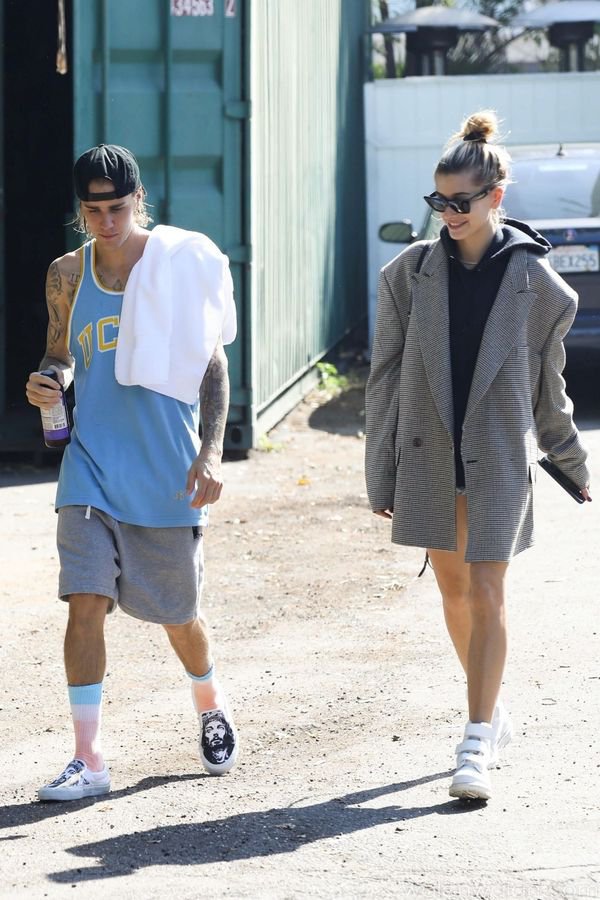 2018年10月23日海莉·鲍德温 (Hailey Baldwin) 与贾斯汀·比伯 (Justin Bieber) 斯蒂迪奥城街拍