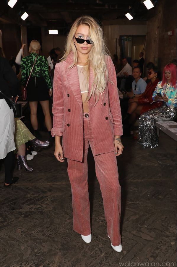 Calilin Russo身穿Mango灯芯绒外套亮相伦敦时装周