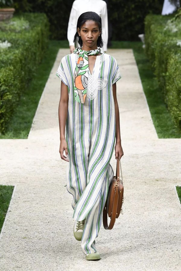 而以印花见长的Tory Burch,在19春夏系列中也少不了印花丝巾的身影。