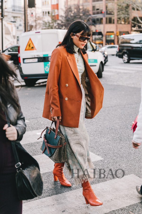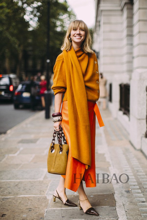 不会搭配柿子色也不要紧,看看街拍达人们怎么穿。秀场上最常出现的配色方案是绝对是柿子色和黑色,略为跳的颜色与日常的黑色在一起后,给人感觉就是又惊艳又沉稳,有着一抑一扬的效果。