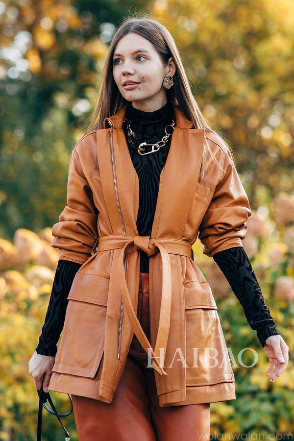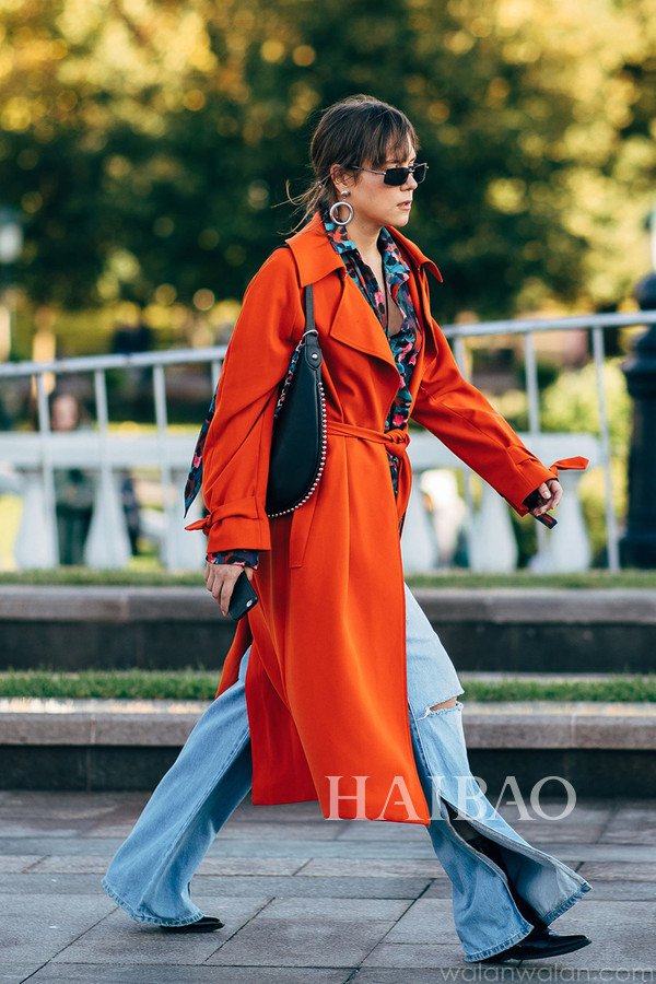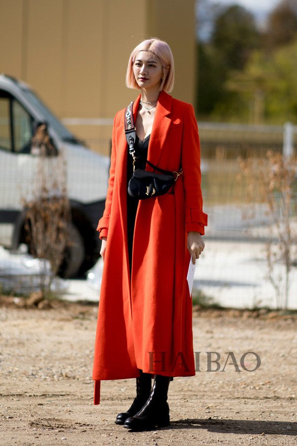 比起毛衣,柿子色的大衣确定更需要些气场,但只要在材质上把好关,选择些阔挺且高级的面料,依旧不是什么大问题,比如皮衣、风衣、西装等气场型外套,都可以尝试下柿子色。