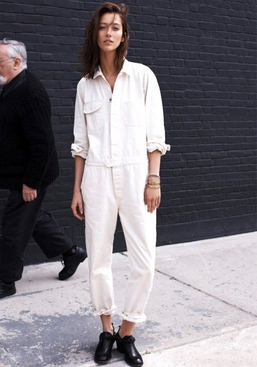 工装连体裤想穿出彩最好从配饰入手,利用包包、鞋子、墨镜、耳环之类的配饰去点亮它。
