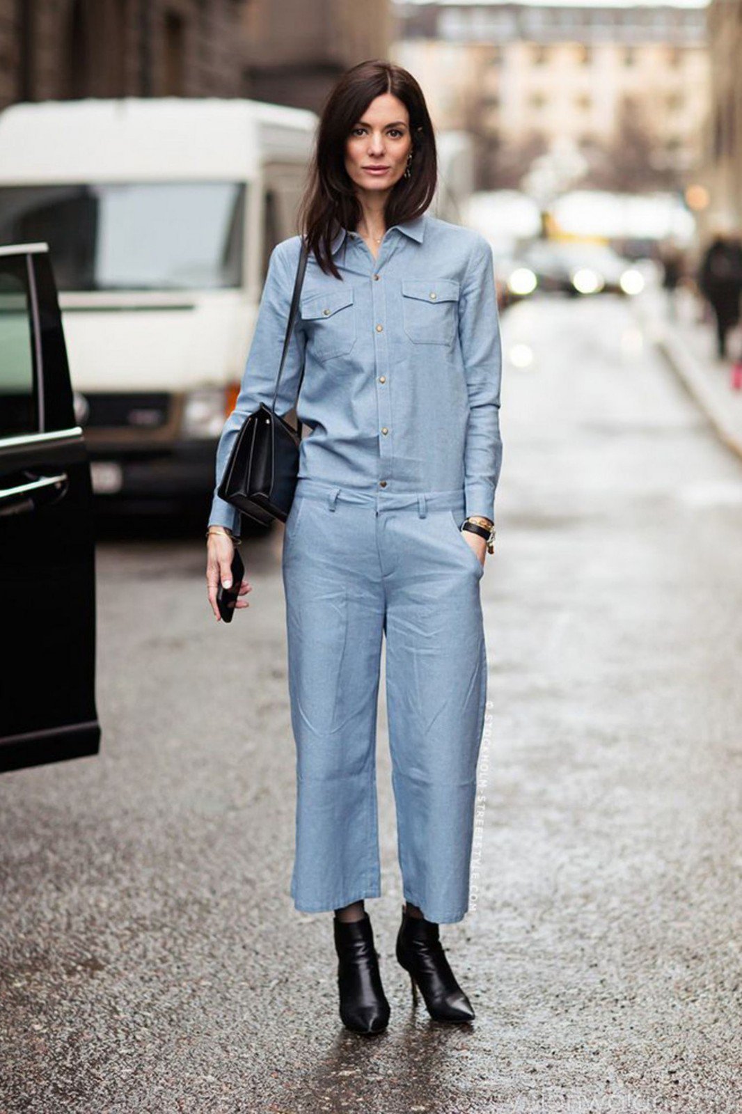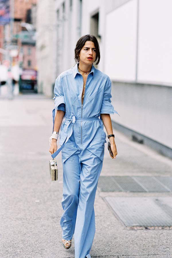 还有,连体工装裤的设计大多偏简约,也可以从颜色上去选择切合自己的风格,像这样的天空蓝就比较清新。