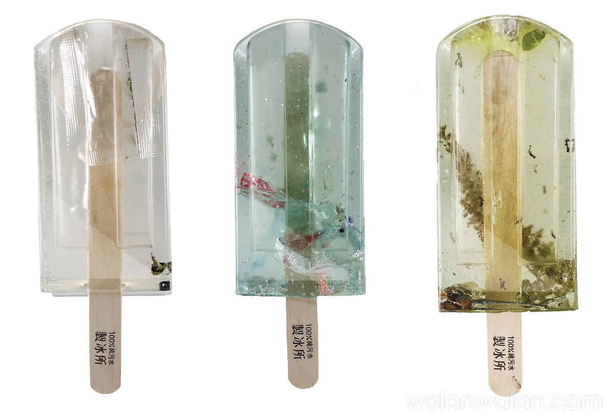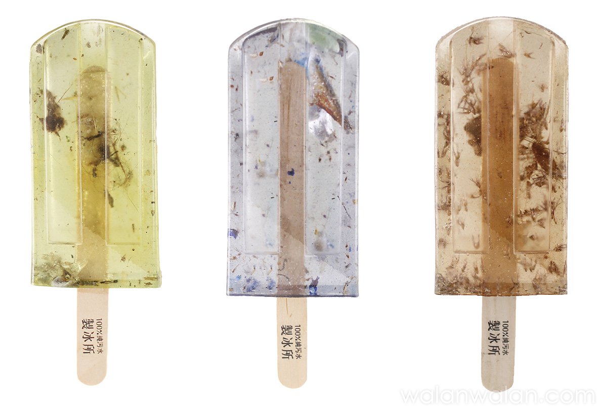 在一年的时间内,他们跑遍台湾各地,从河流,港口,排水沟,地下水道采集污水洪亦辰介绍:“一开始,我们并没有相应的设备,我们只是去到这些地方,然后就直接采集污水,这个过程并不容易。我们最常见到的污染物是塑料废物,譬如瓶子,塑料包装,吸管等等。而污水的颜色主要来自于工业废弃物和颜料污染。“100%纯污水制冰所”不仅在台湾走红,并在全球范围内被广泛传播,成为引人注目的设计案例,引发人们对环境问题的深省,